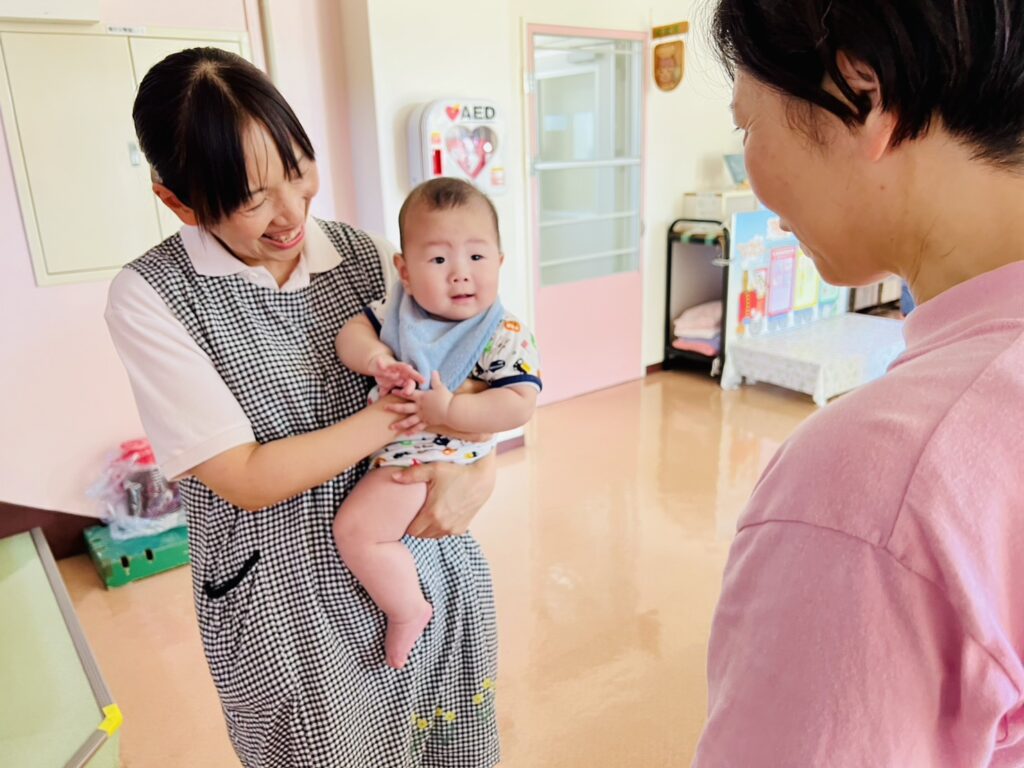 初めて登園をしてきたお友だちですが、しっかりと先生やお友だちに笑顔でご挨拶をしていました!!