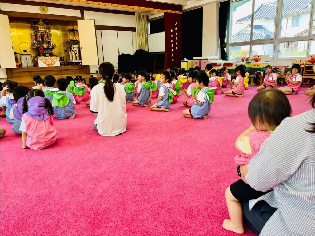 朝の仏参の時間には、全園児が遊戯室で仏さまの心に出会います。今月はどんな出会いがあるでしょうか。
