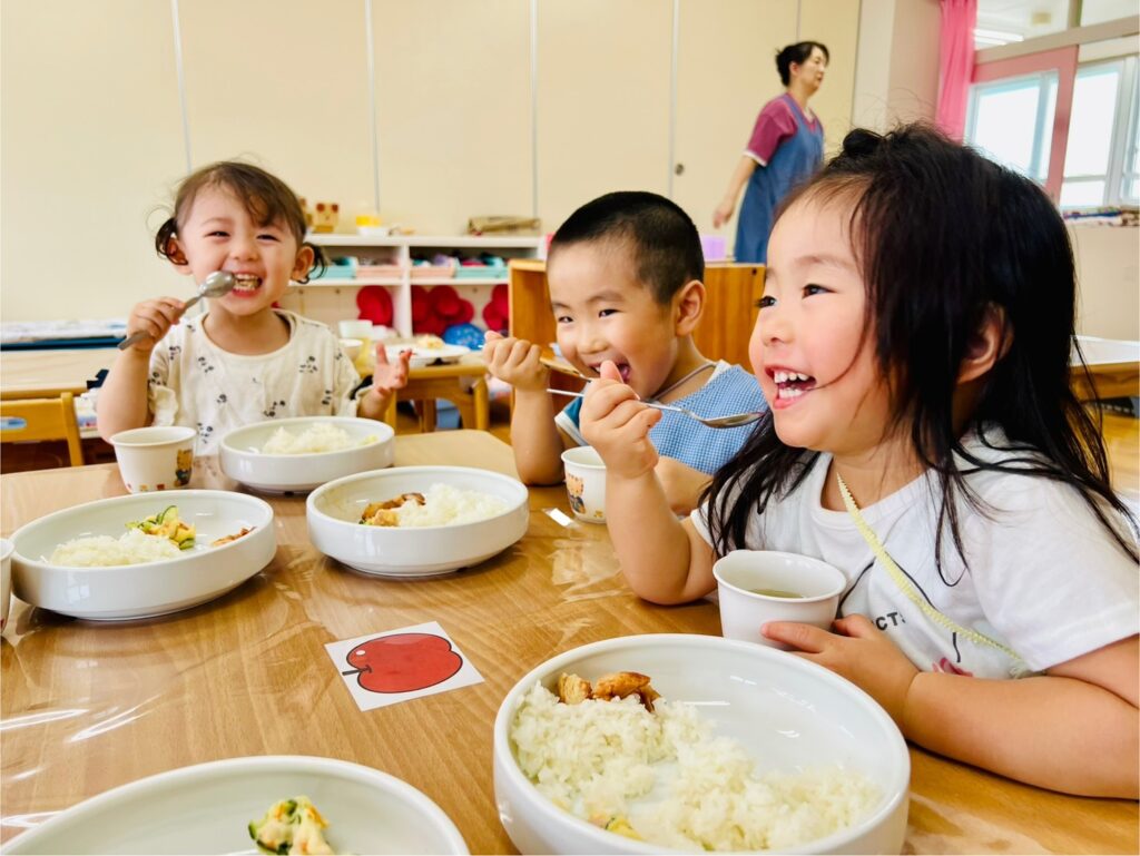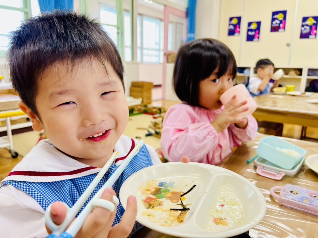 そして、いざ給食が提供されると〝溢れんばかりの笑顔〟でお友だちと楽しい給食の時間を楽しんでいました。