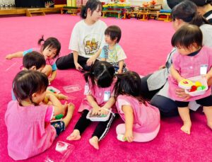 未満児さんは、チケットを使いかき氷と交換をしており、お店屋さんごっこのようでした。