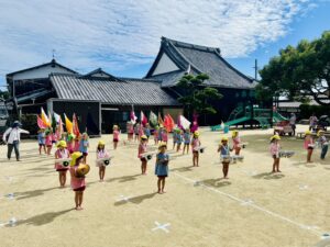 未満児さんが見守ってくれるなか、今日は〝オープニングとフィナーレ〟の合同練習を行いました。