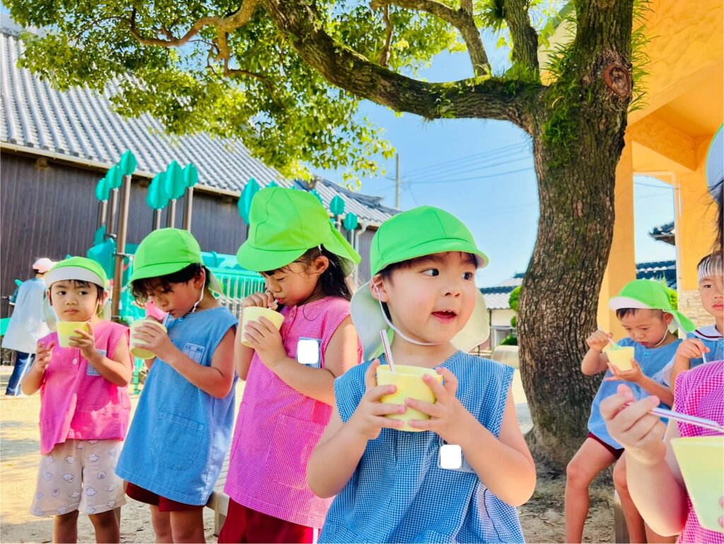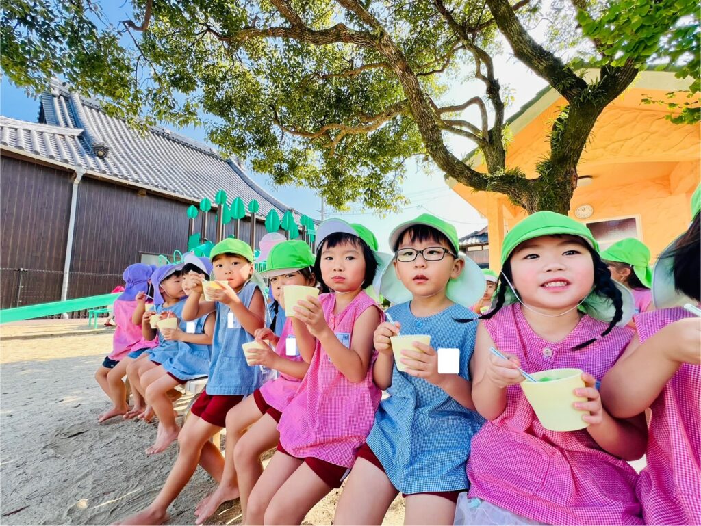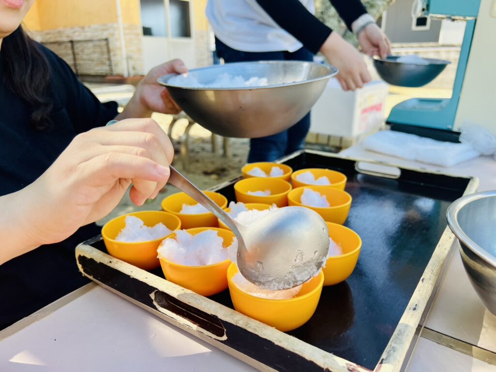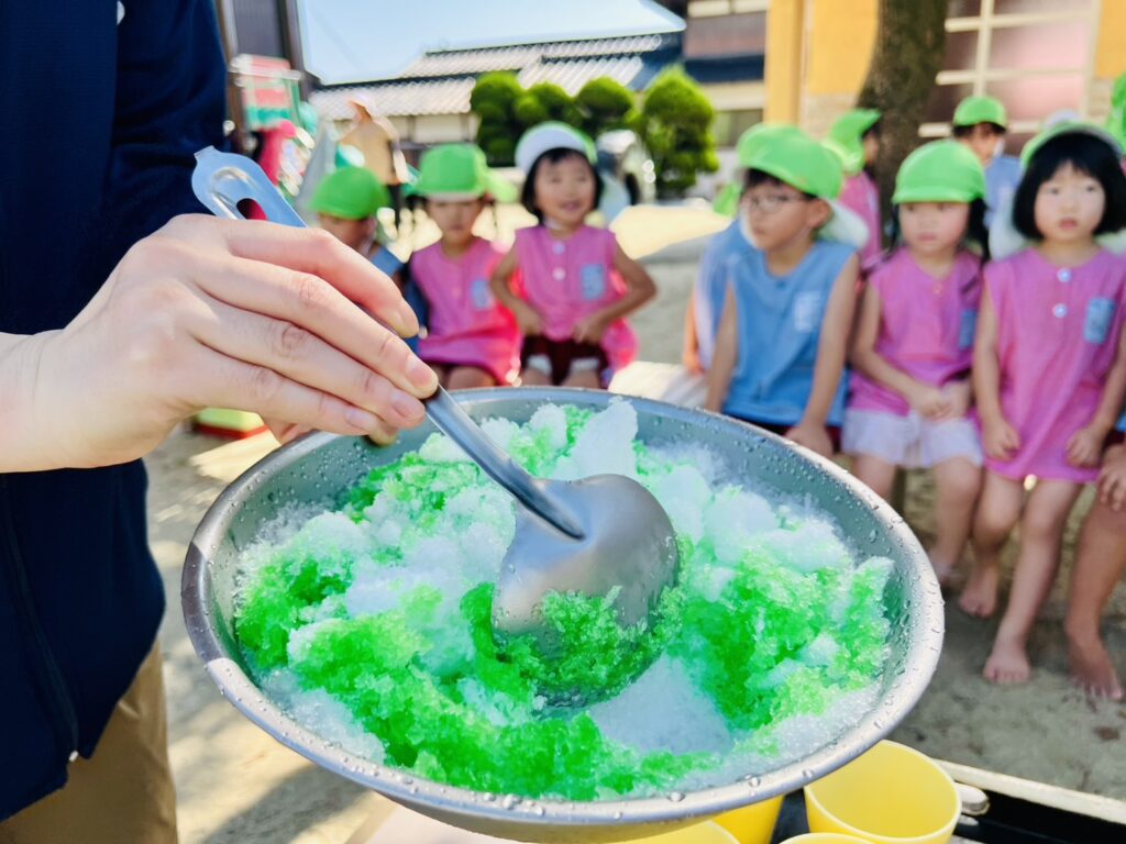 練習の後は、先生が〝かき氷〟を準備してくださっており、その〝冷たさと彩り〟をお友だちと楽しんでいました。