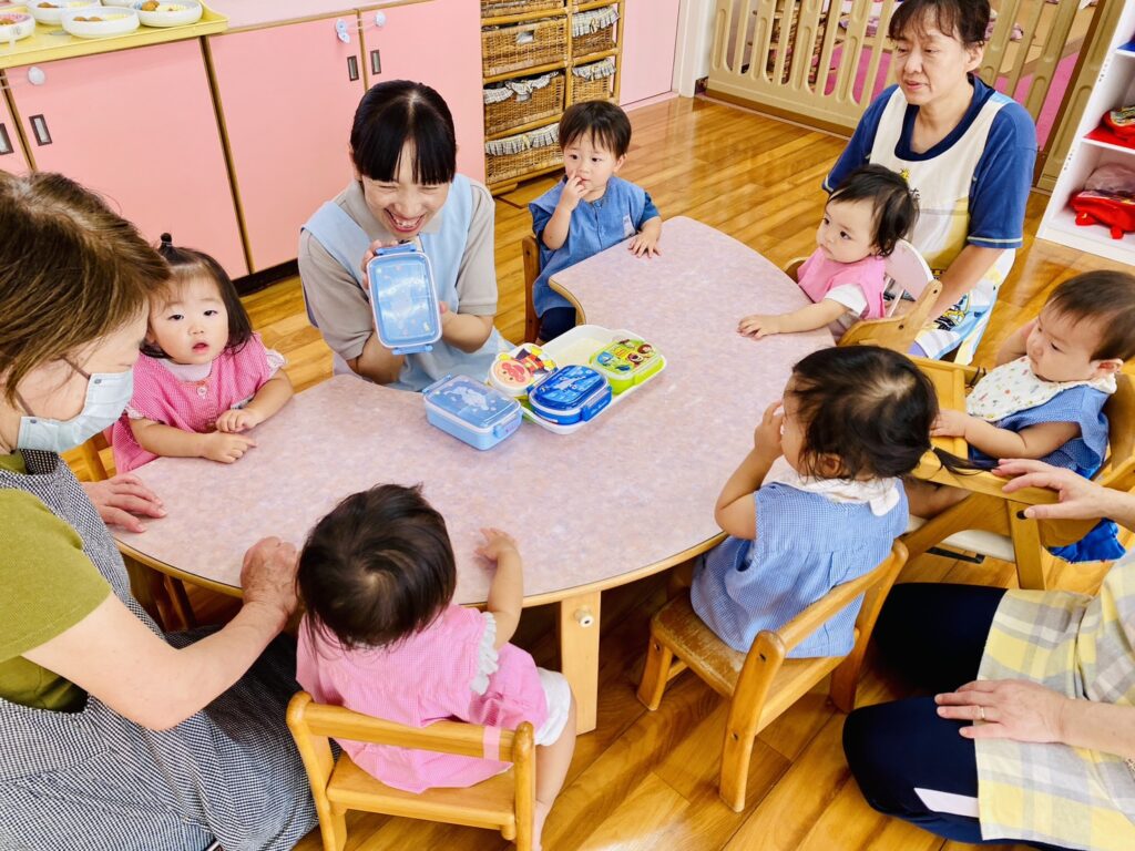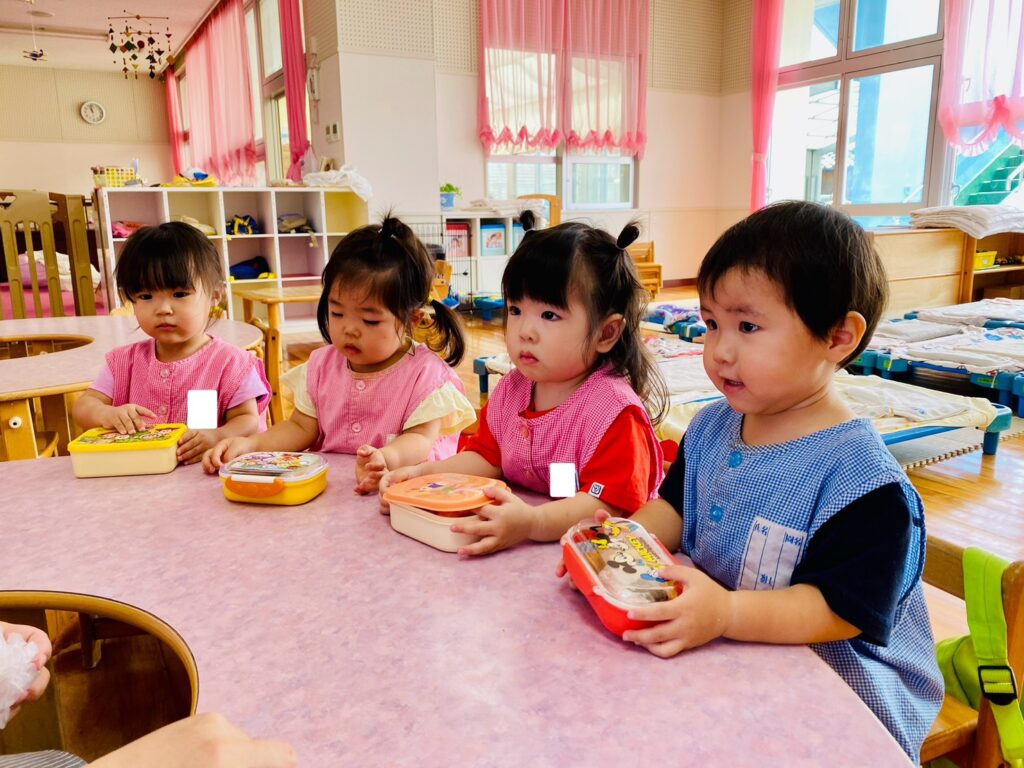 今年度4月の1才児クラスは「おべんとう」という絵本に出会いました。