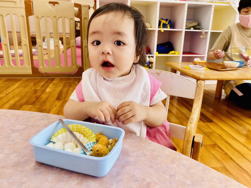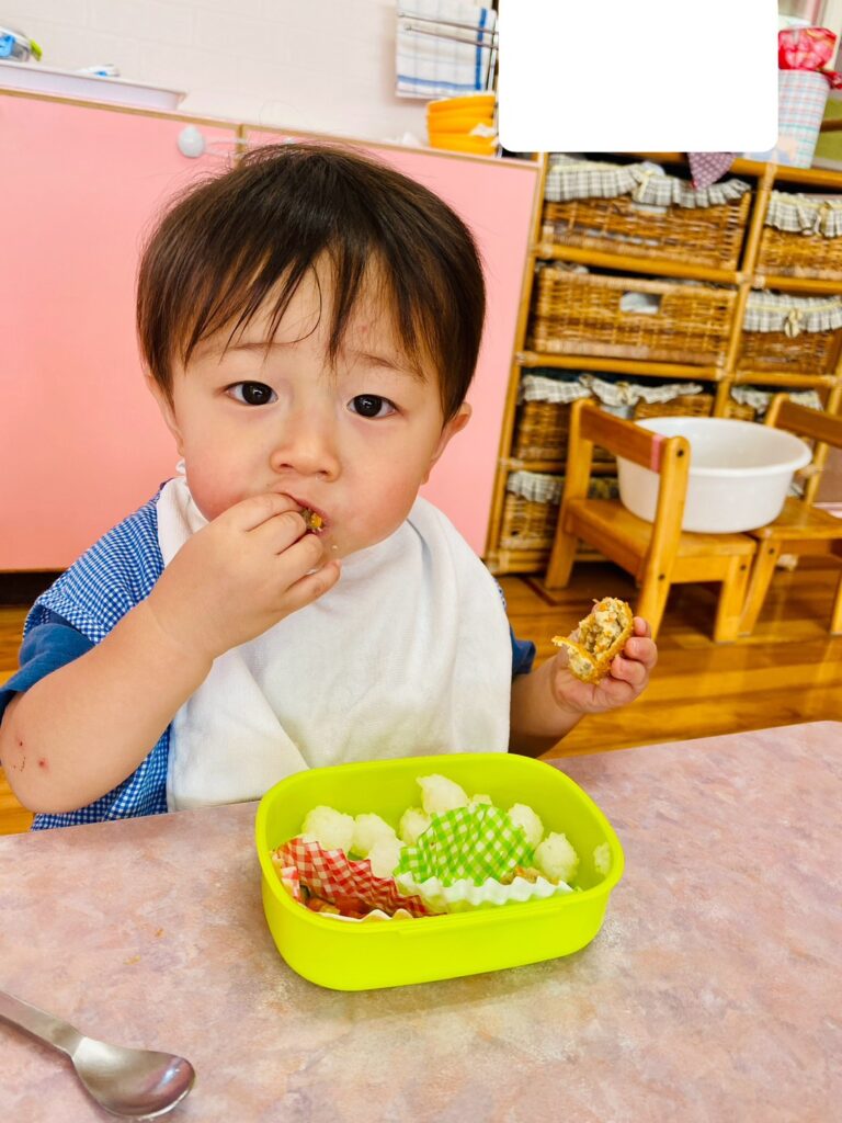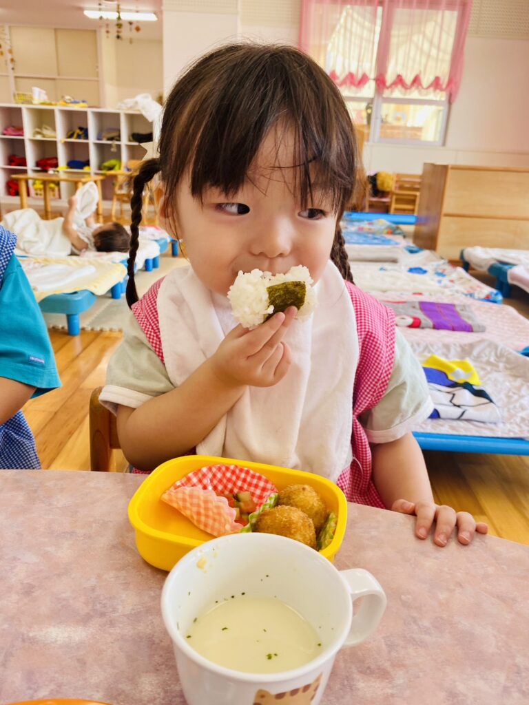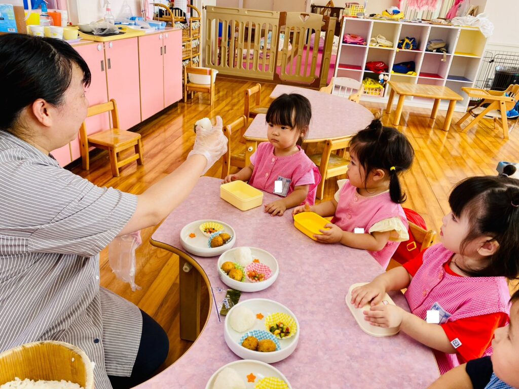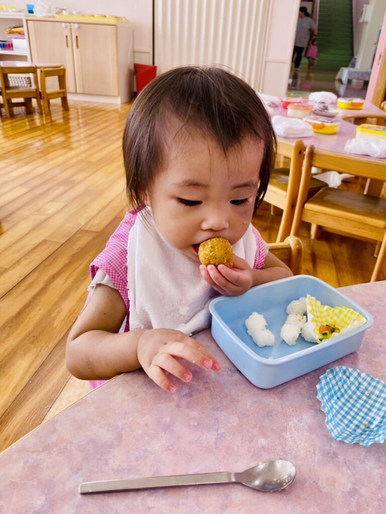 メニュー内のご飯では、先生がそれぞれの発達に合わせて〝特性のおにぎり〟にしてくれました。