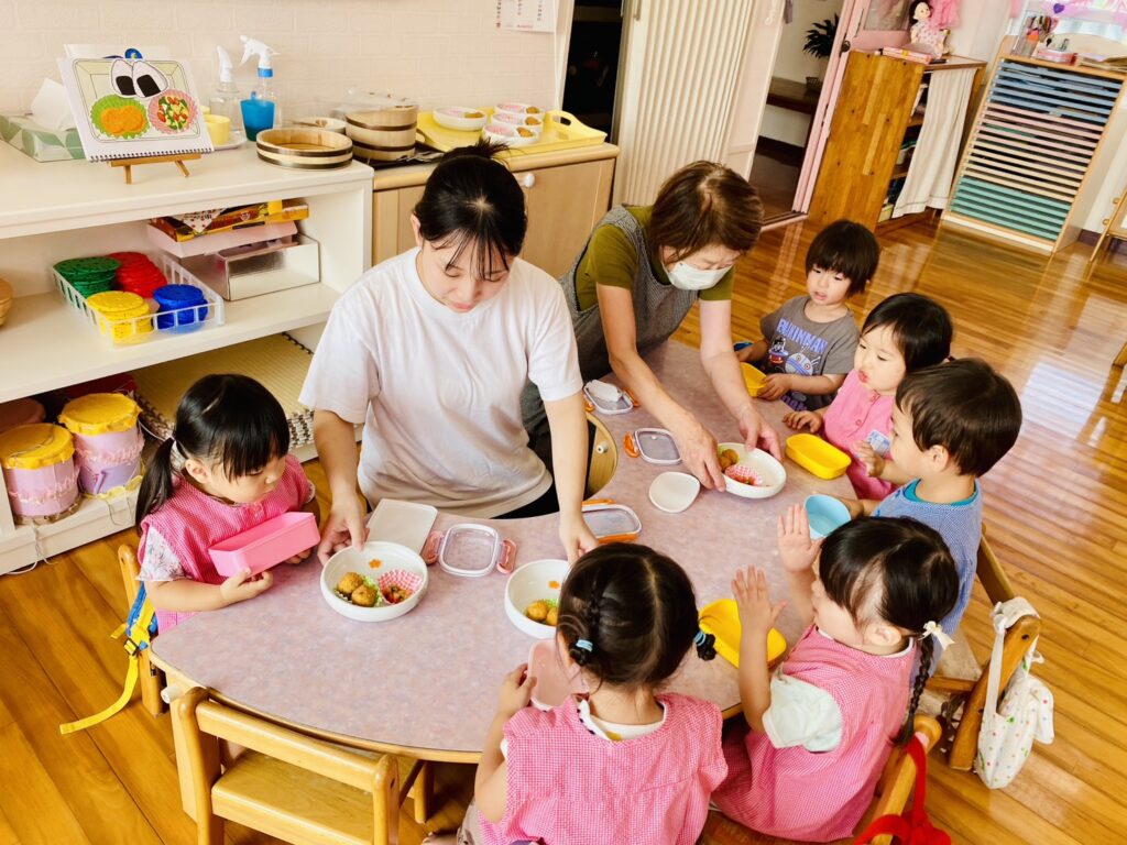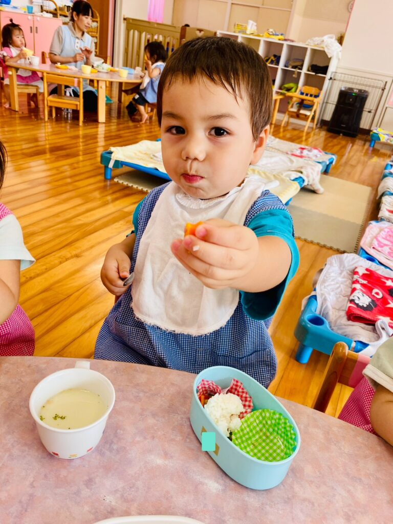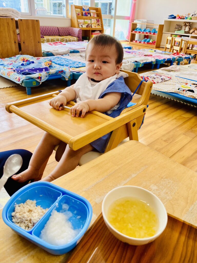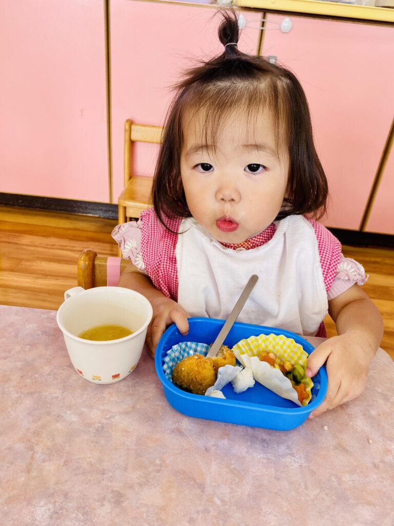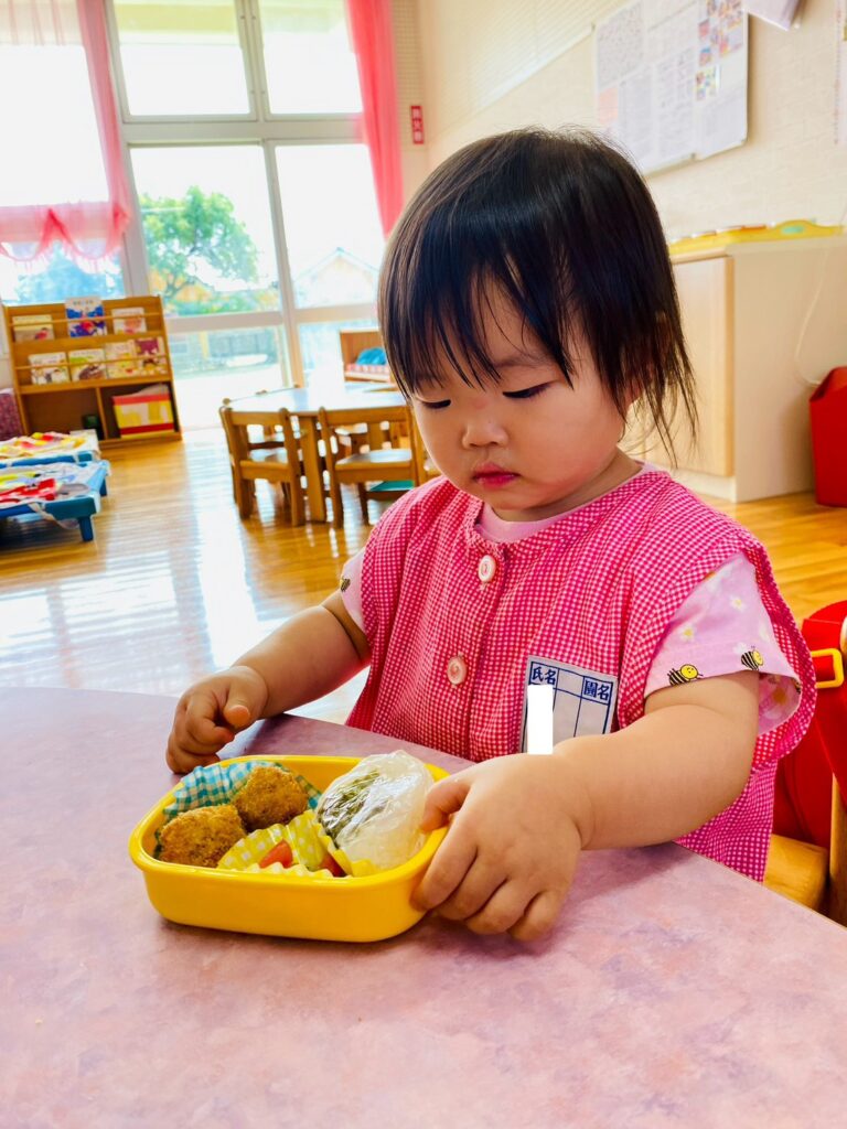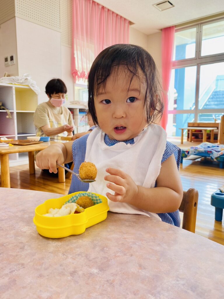メニュー内のご飯では、先生がそれぞれの発達に合わせて〝特性のおにぎり〟にしてくれました。