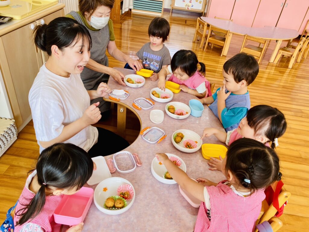 そんな子ども達の姿をみて、〝この絵本を発展させてみては!〟と、担任と栄養士とが連携を取り、5月に引き続き今回も実現しました!!