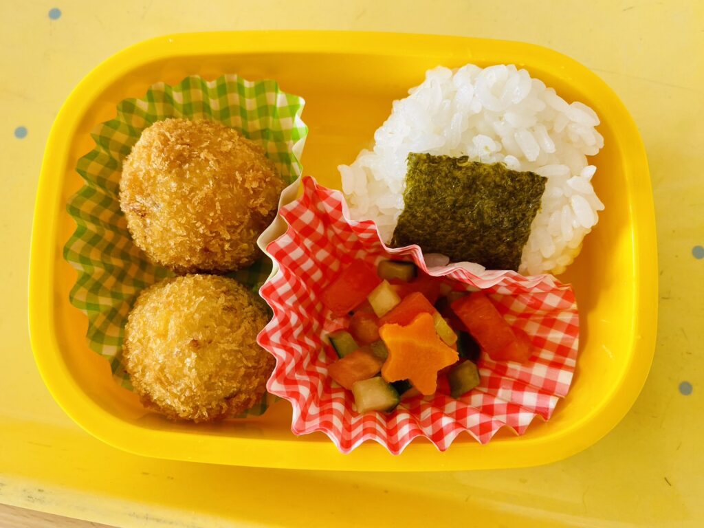 今回のメニューは〝ご飯・おからコロッケ・サラダ・スープ〟です。