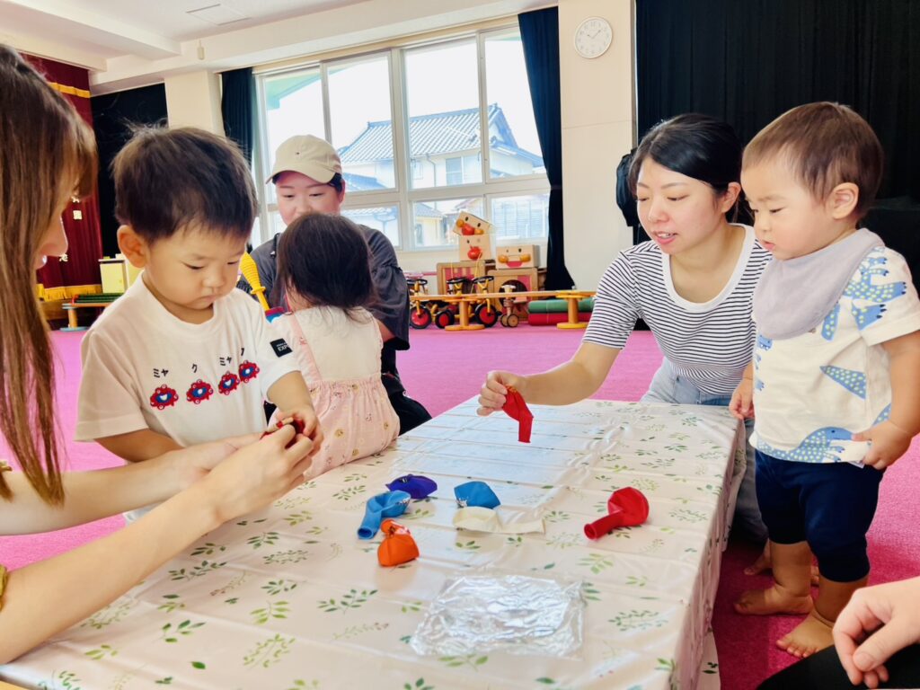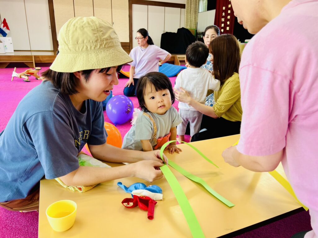 風船選びでは、お友だちの思いが汲み取って貰え、さっそく工作が始まりました。