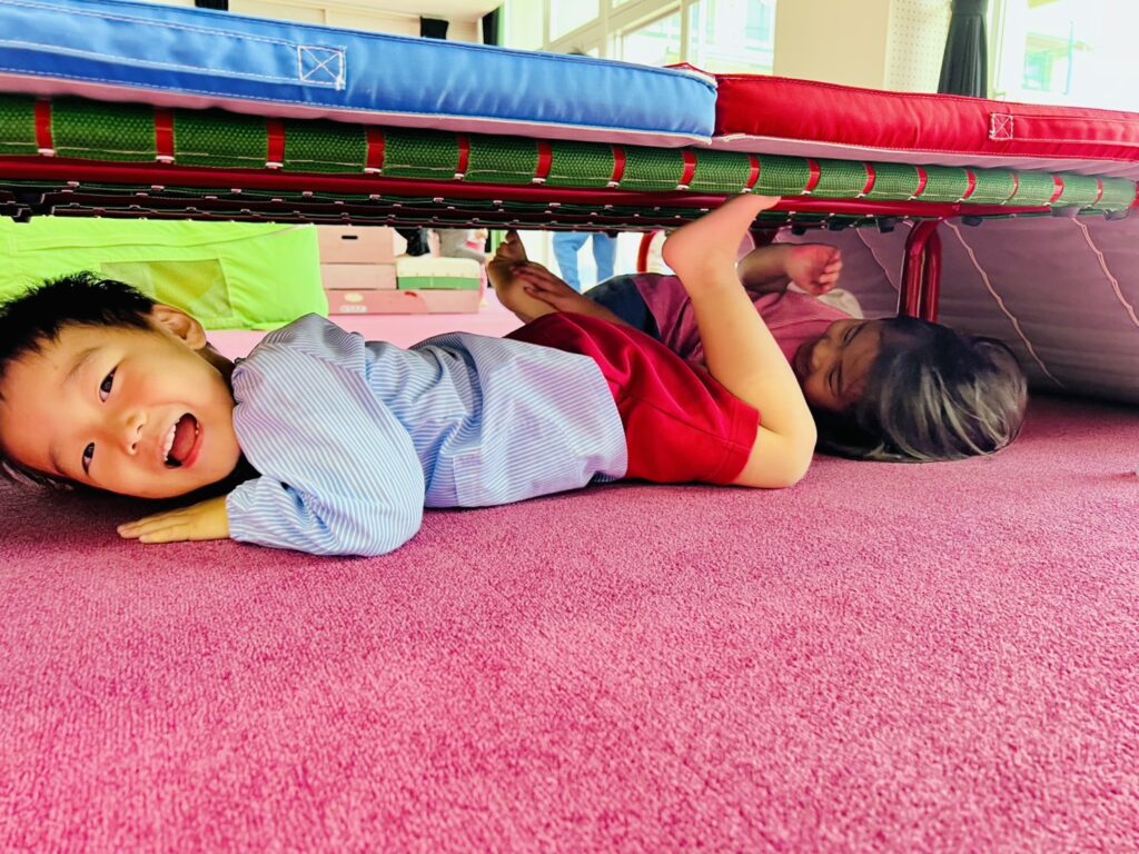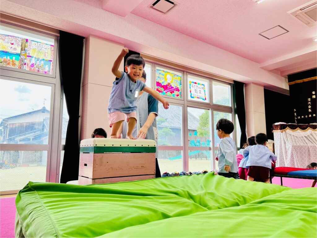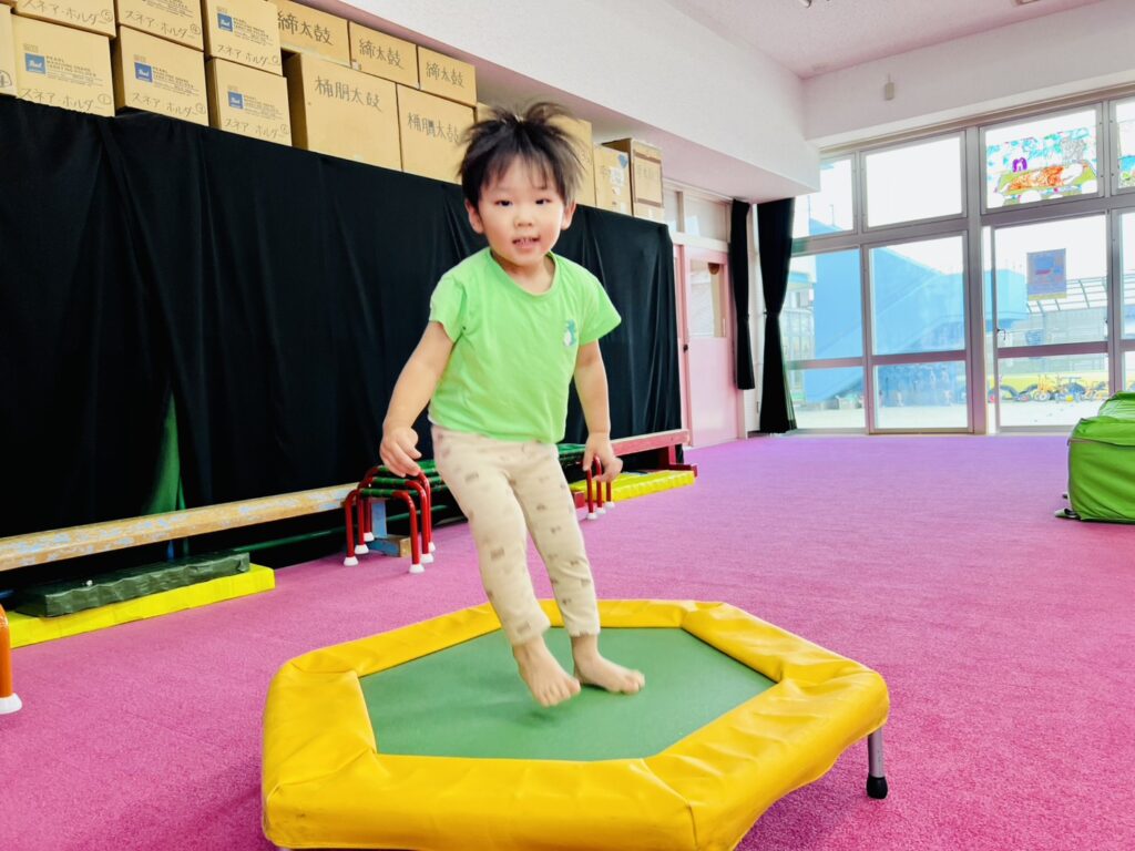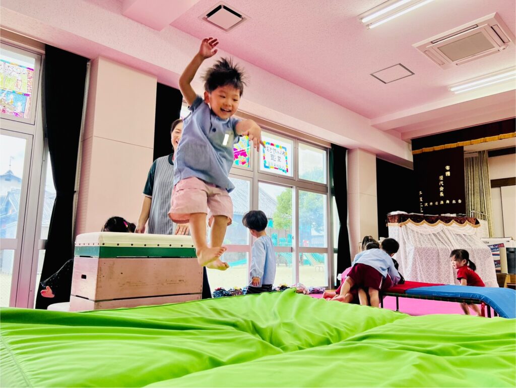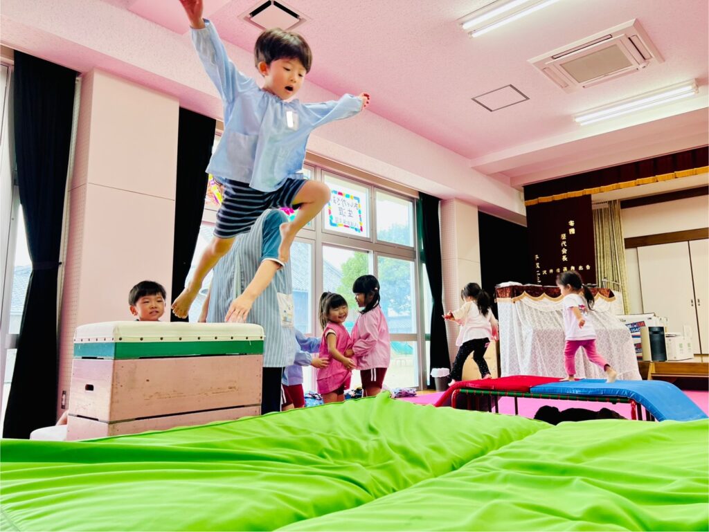 年少児さんは〝大型クッションマット〟へ高くジャンプして飛び込んでいました!!