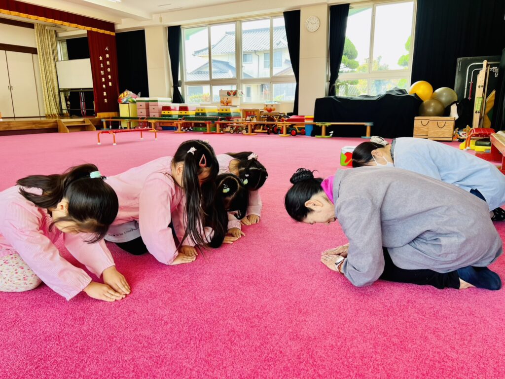 子ども達も先生の動きや所作を自分の身体で表現できるように、真剣な眼差しでしっかりと真似していました。