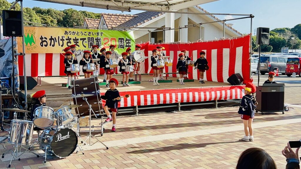 また、年長さんは午後から築上町物産館〝メタセの杜開業20周年〟にマーチング出演をさせて頂きました。