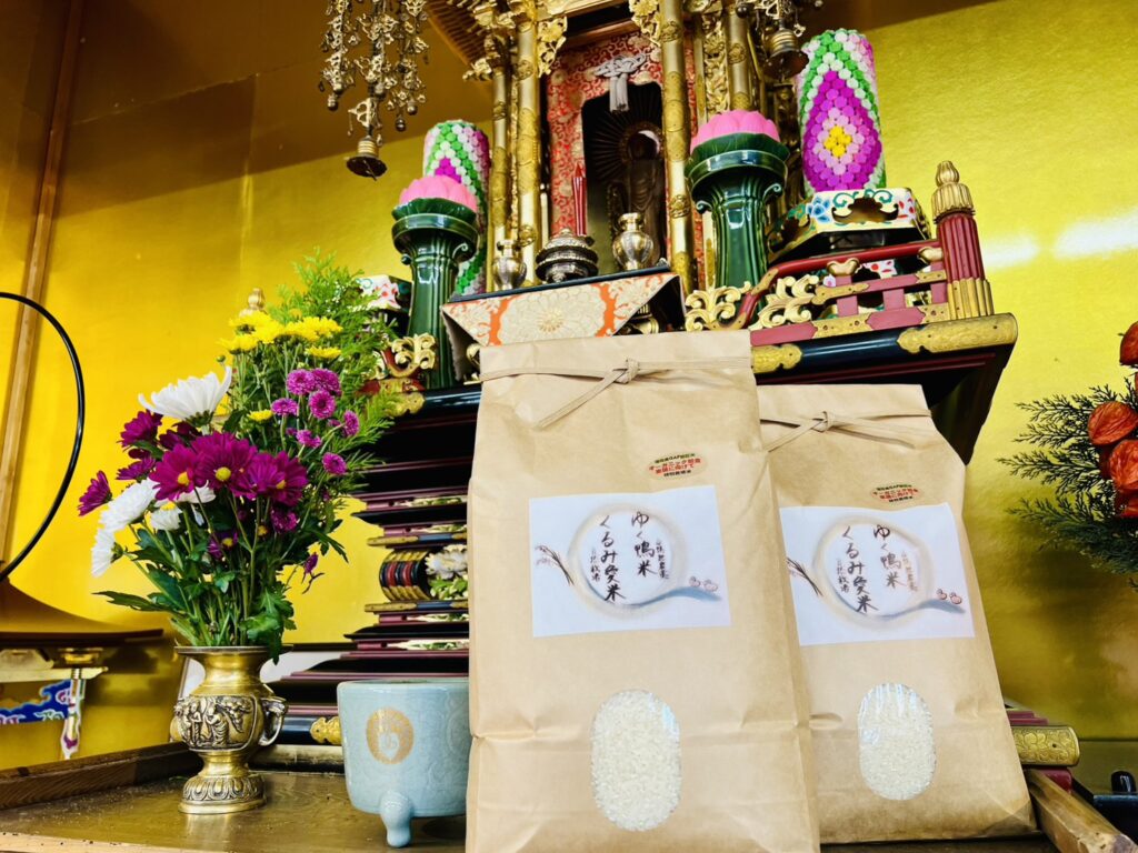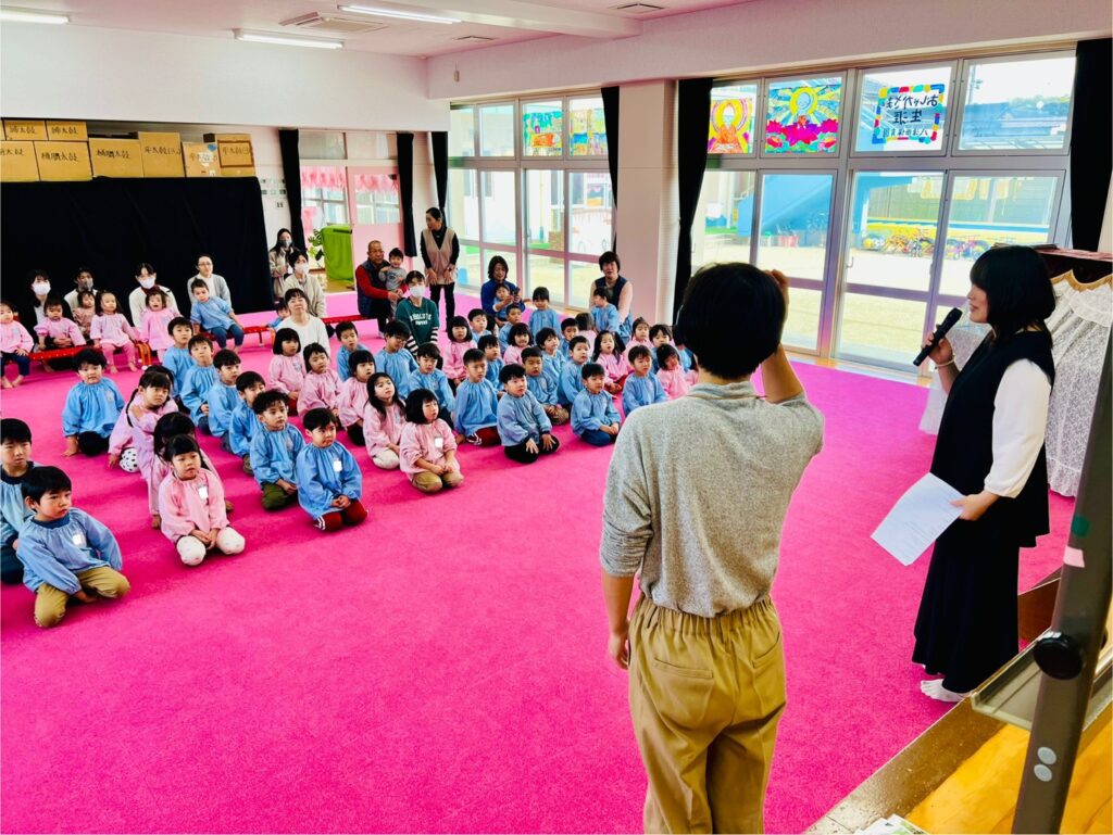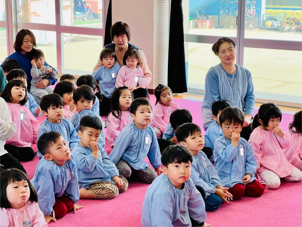 今日は昨年と同じように「親子の学び舎くるみ」の正野さん(在園児保護者)と矢野さんがご来園くださり、お米の寄贈式を行いました。
