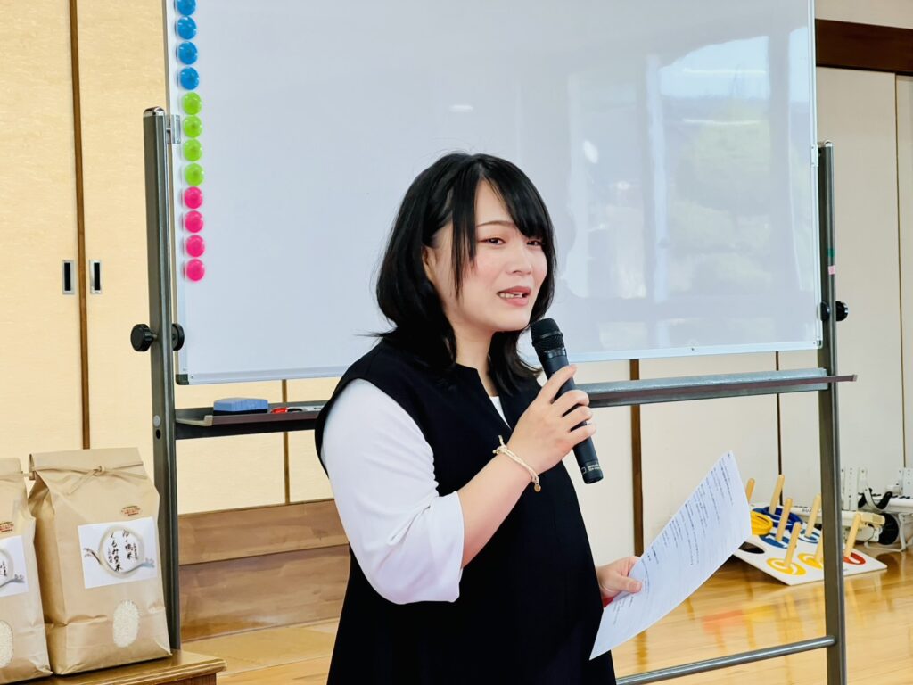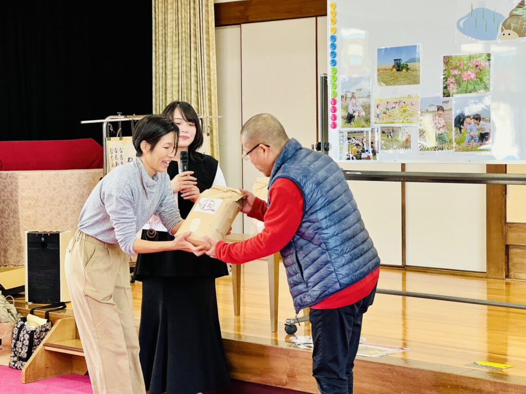 安心で安全なお米ができるまでのお話しや農薬や化学肥料を使わずに土を育てるお話しなど丁寧にわかりやすく、またクイズ形式で聞かせて頂きました。