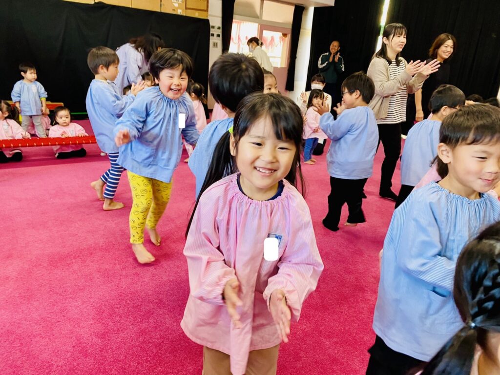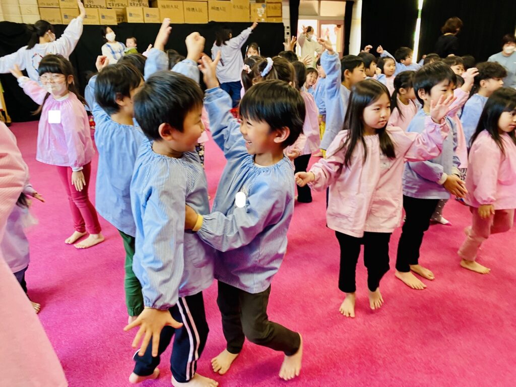 座っての鑑賞の後は、少し身体を動かす〝ドコノコキノコ〟の時間でしたが、どのクラスも大盛り上がりです。