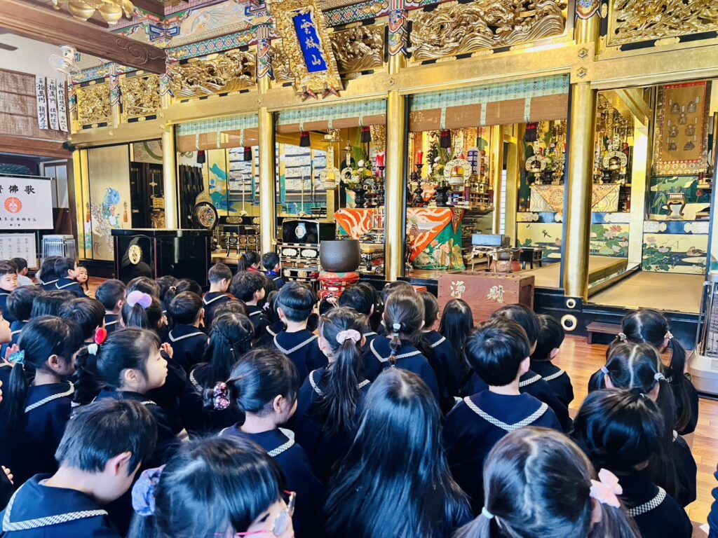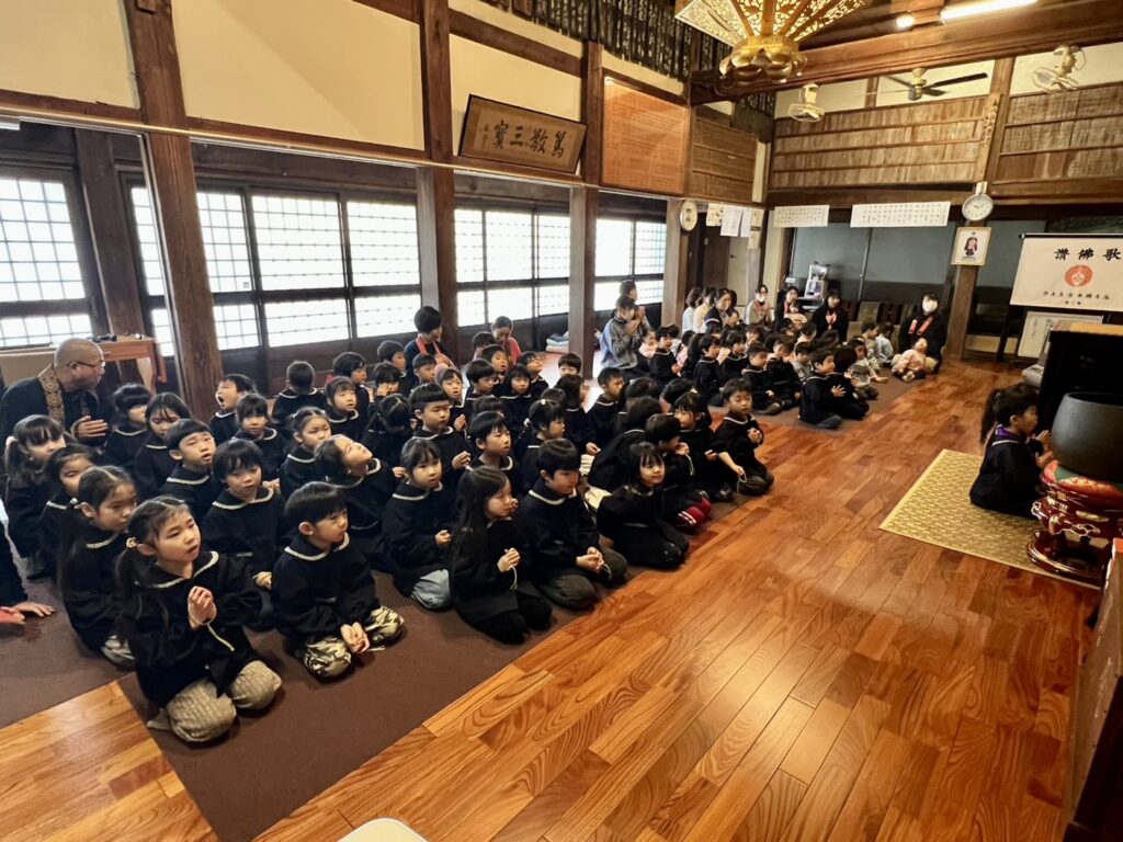 今日は全園児を対象に專廣寺の本堂で〝子ども報恩講〟を行いました。