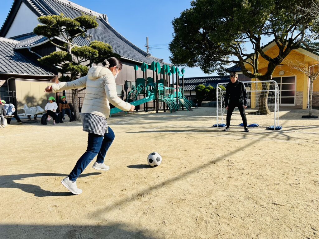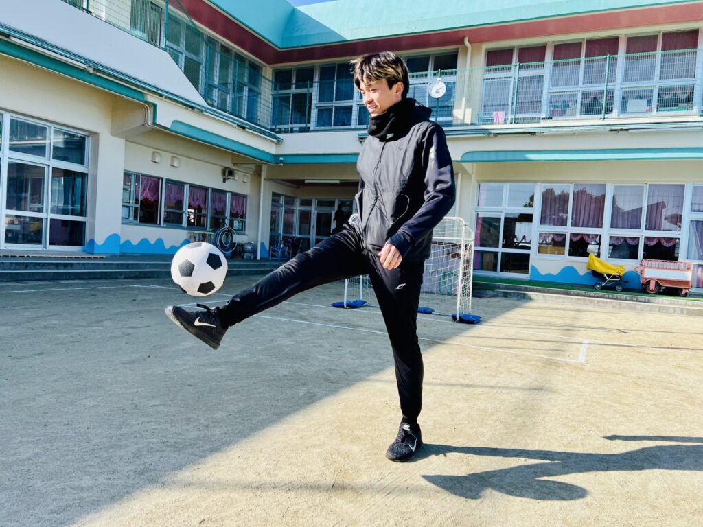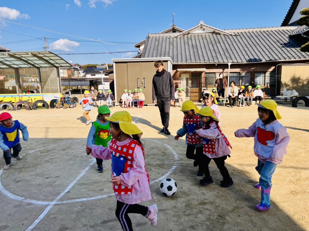 園長先生が松山健太選手を紹介くださった後は、早速リフティングの要望!!快く応えてくれる姿もプロサッカー選手です。