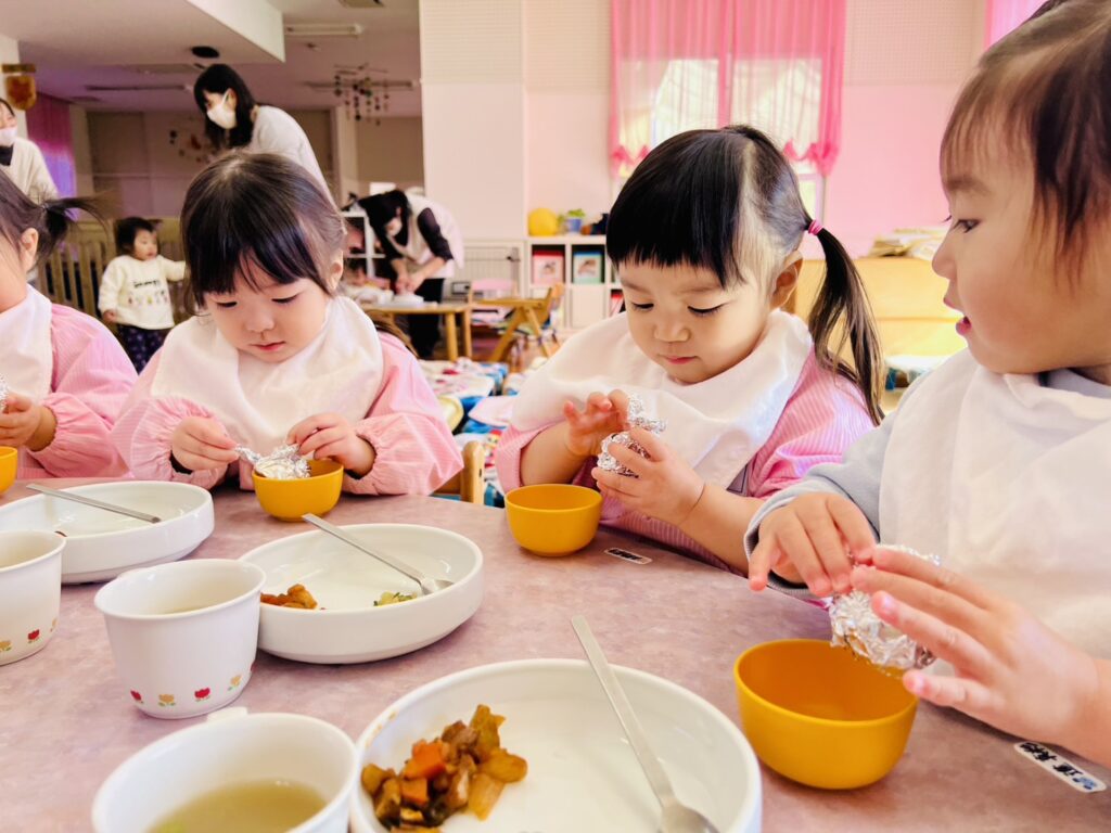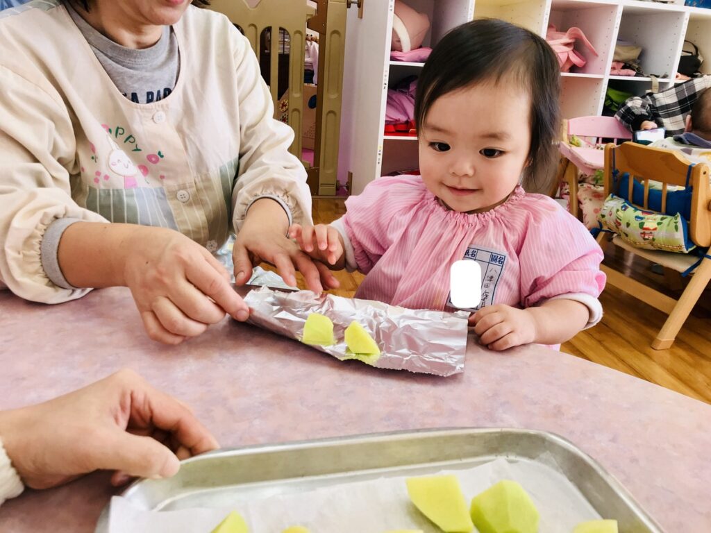未満児の食育~ジャガイモをホイル蒸し~