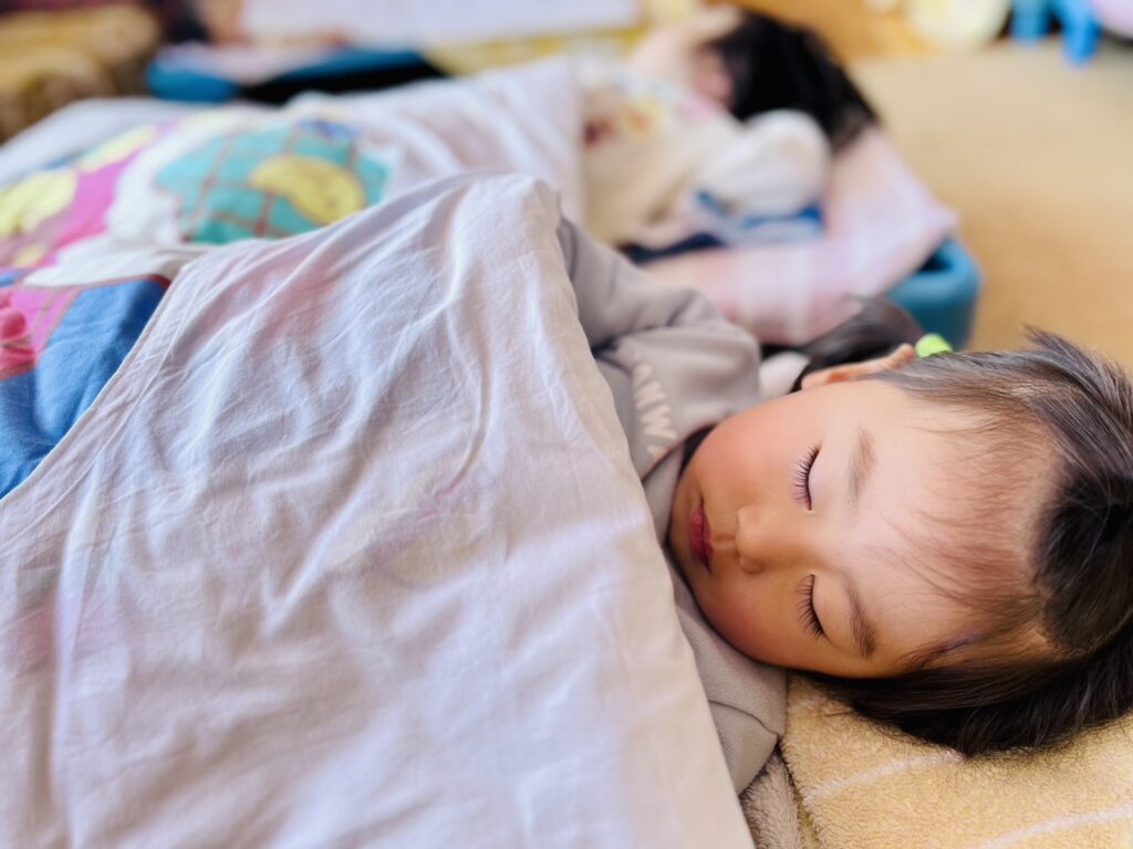 お腹いっぱいの後は、ぐっすりとお昼寝タイムです。どんな夢をみているのかな♪