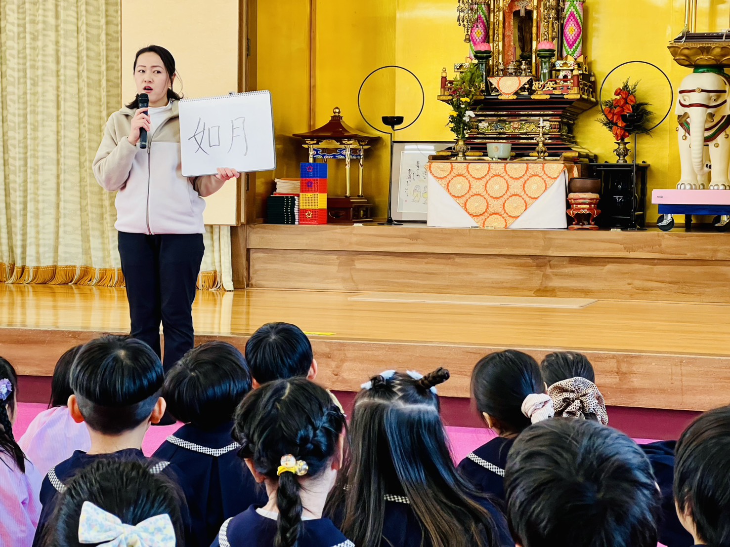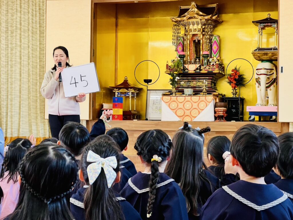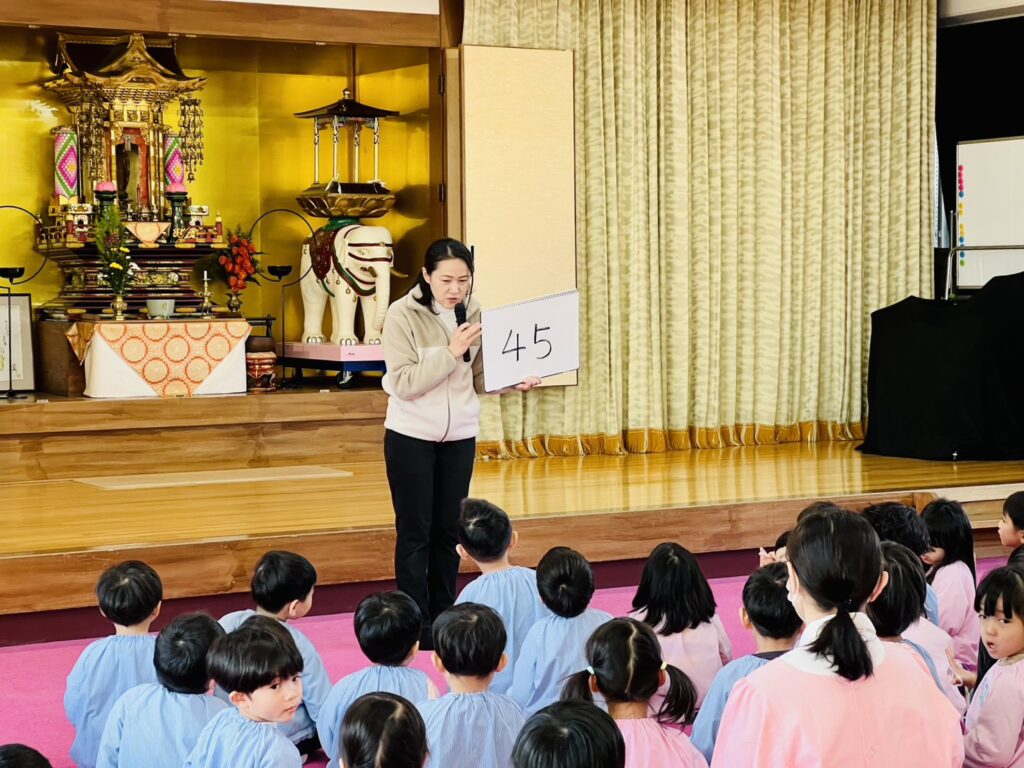 2月となり、いよいよ来月は年度末です。当園では、朝の体操・仏参(ブッサン)の後に、先生から短いお話があります。