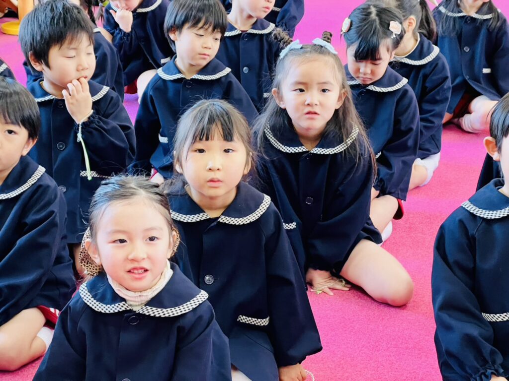 これからは就学へ向け、期待を膨らませながら、残りの園生活を大切にお友だちと楽しく過ごしましょう。そんなお話しを聞きました。