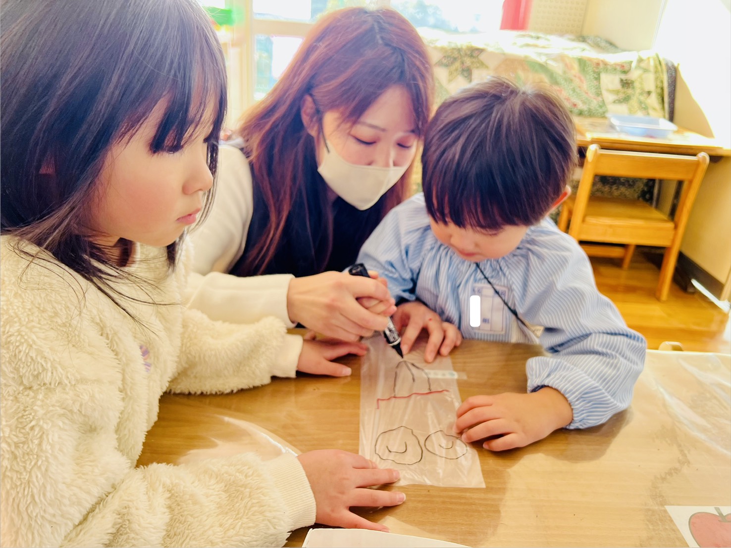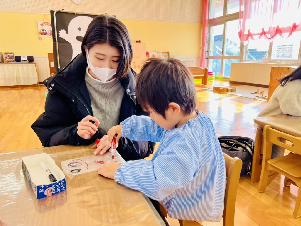 ペンの持ち方やハサミの使い方などの活動では、日頃の保育である〝遊んで学ぶ〟という事を感じていただけたのではないでしょうか。