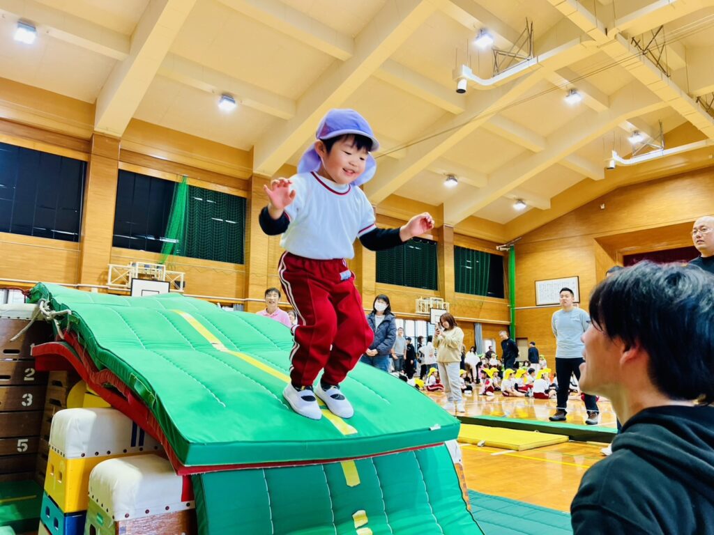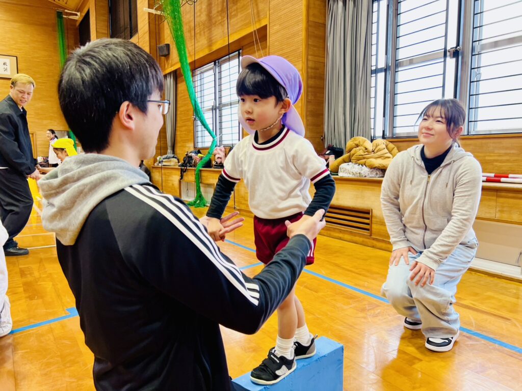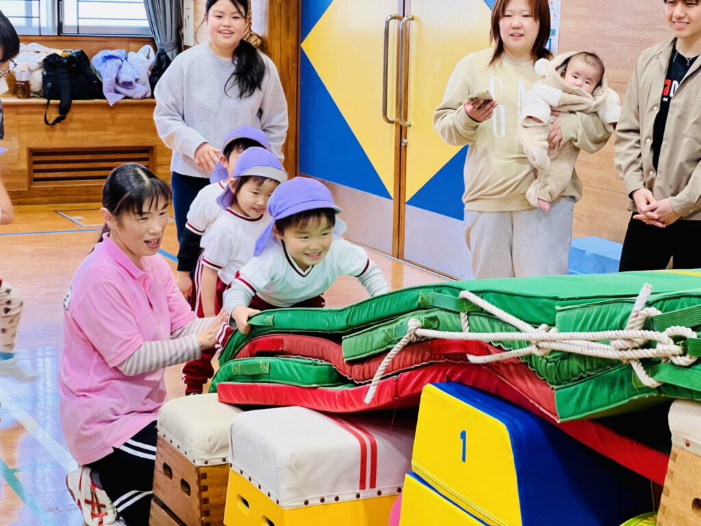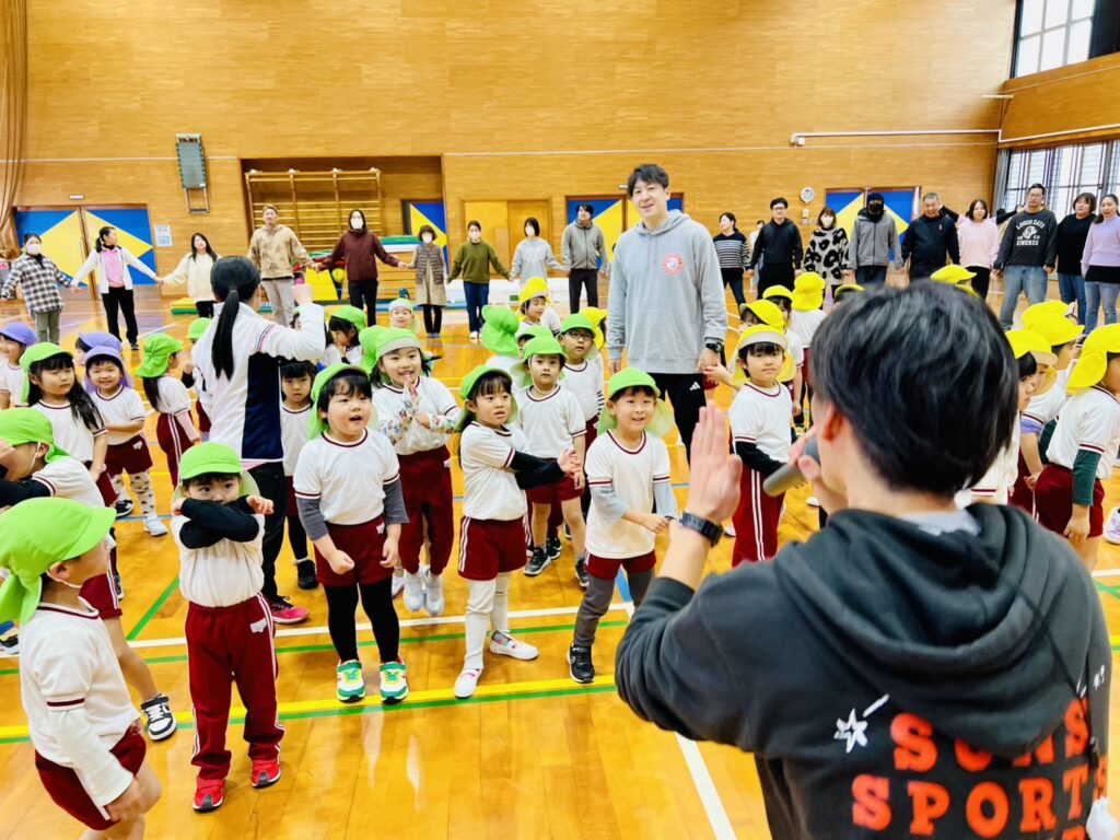 以上児クラスの保育参観は、八津田小学校の体育館に場所を移動して行いました。