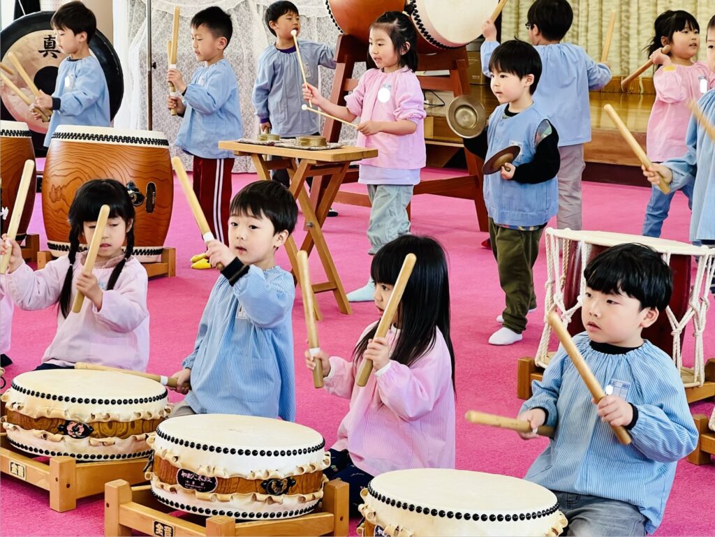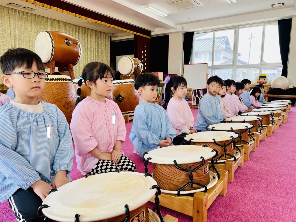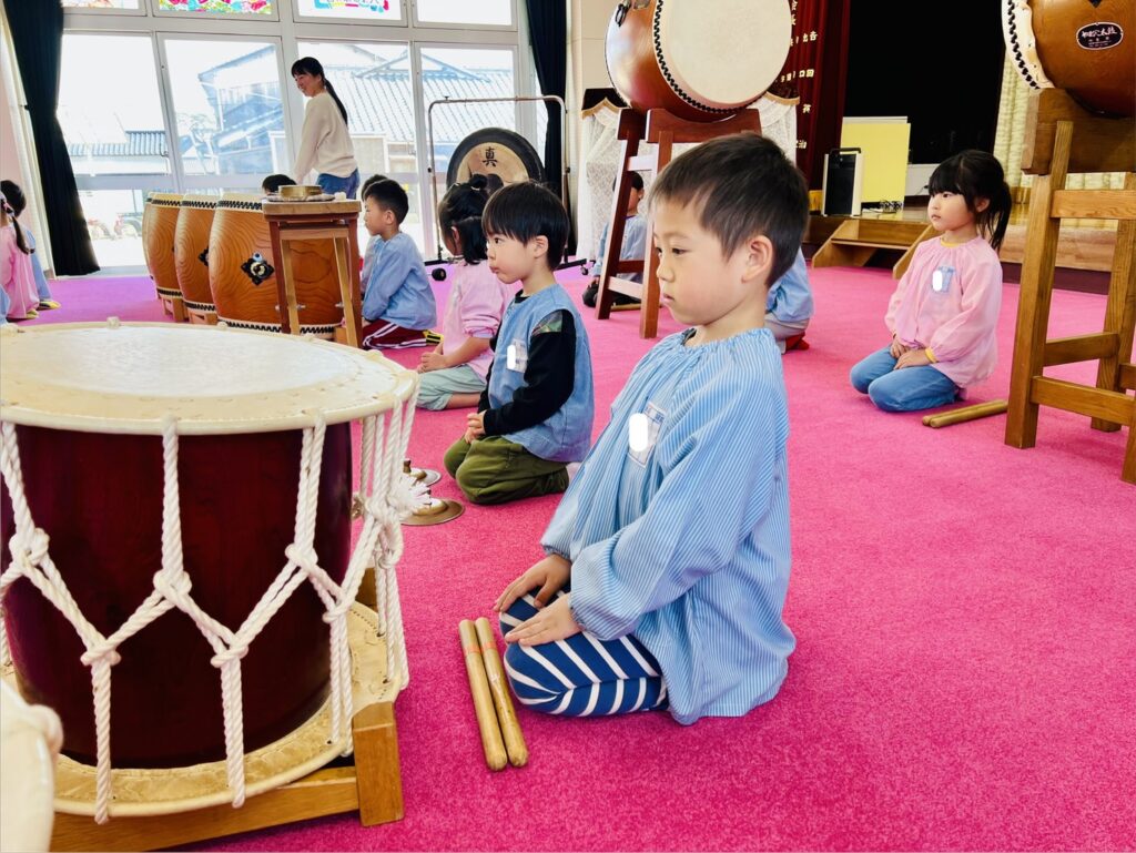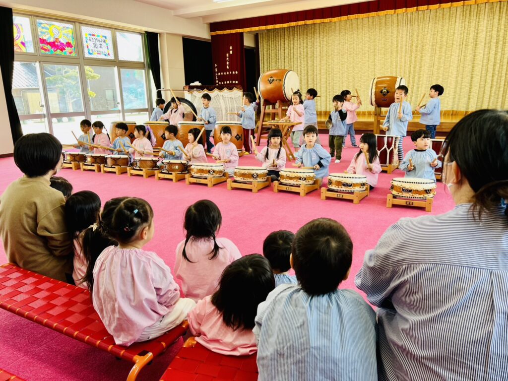 年中児さんが今年度の集大成として、また来年度への取り組みとして〝和太鼓の初披露〟を園内で行いました。