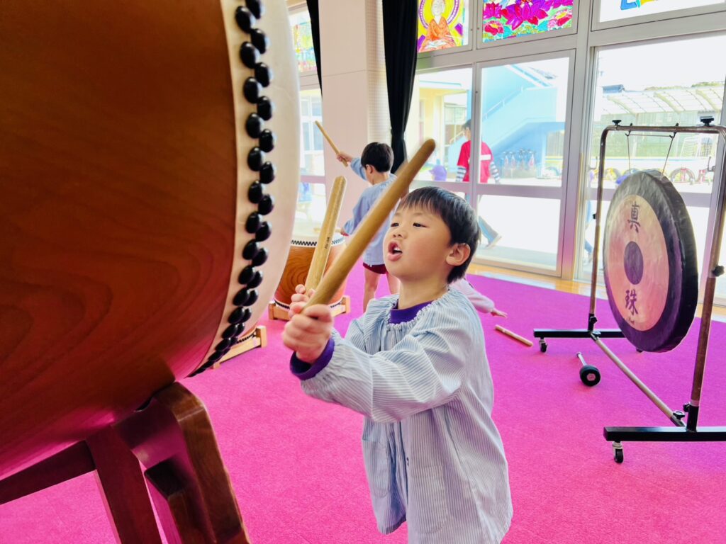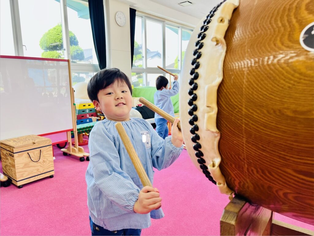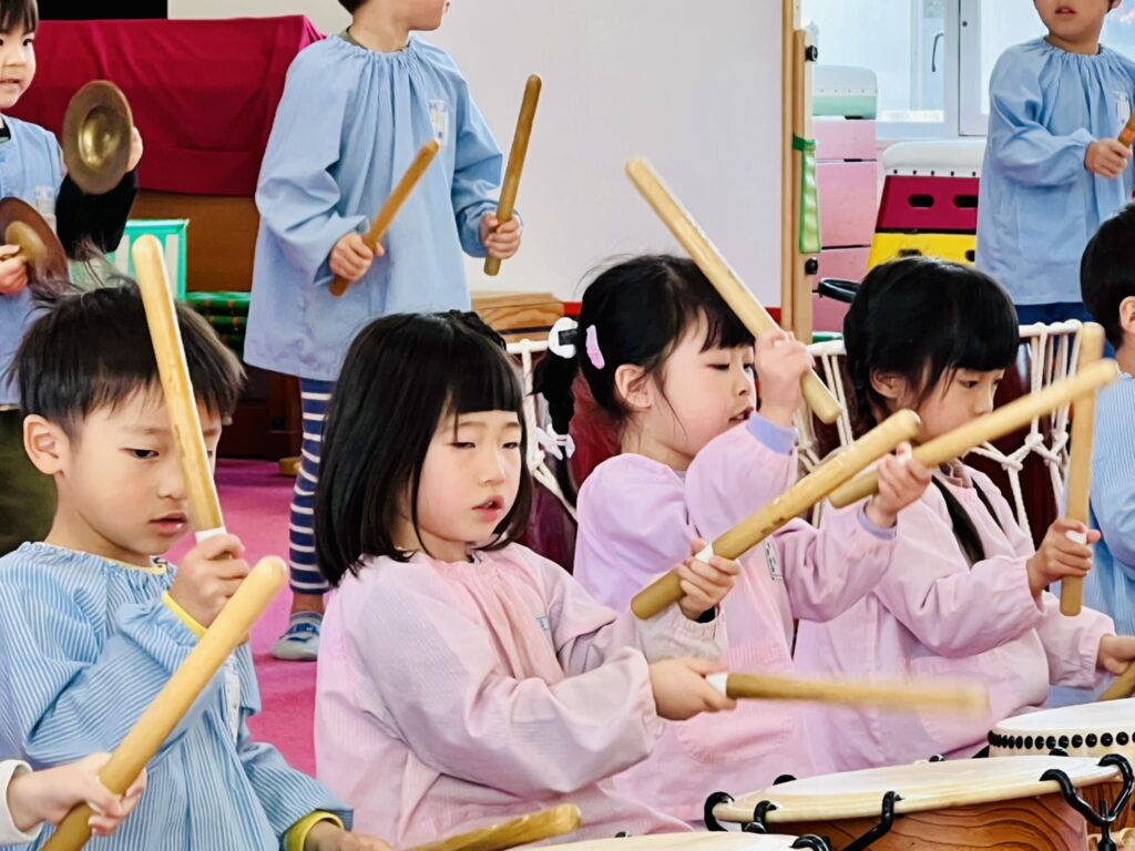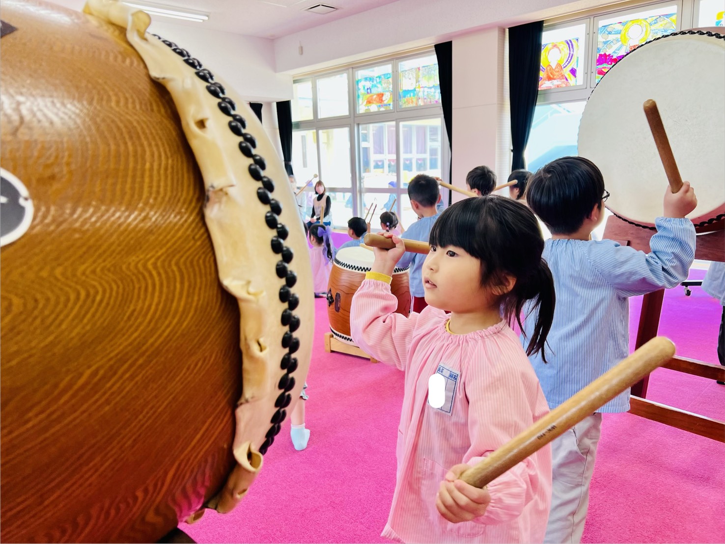 年中児さんが今年度の集大成として、また来年度への取り組みとして〝和太鼓の初披露〟を園内で行いました。