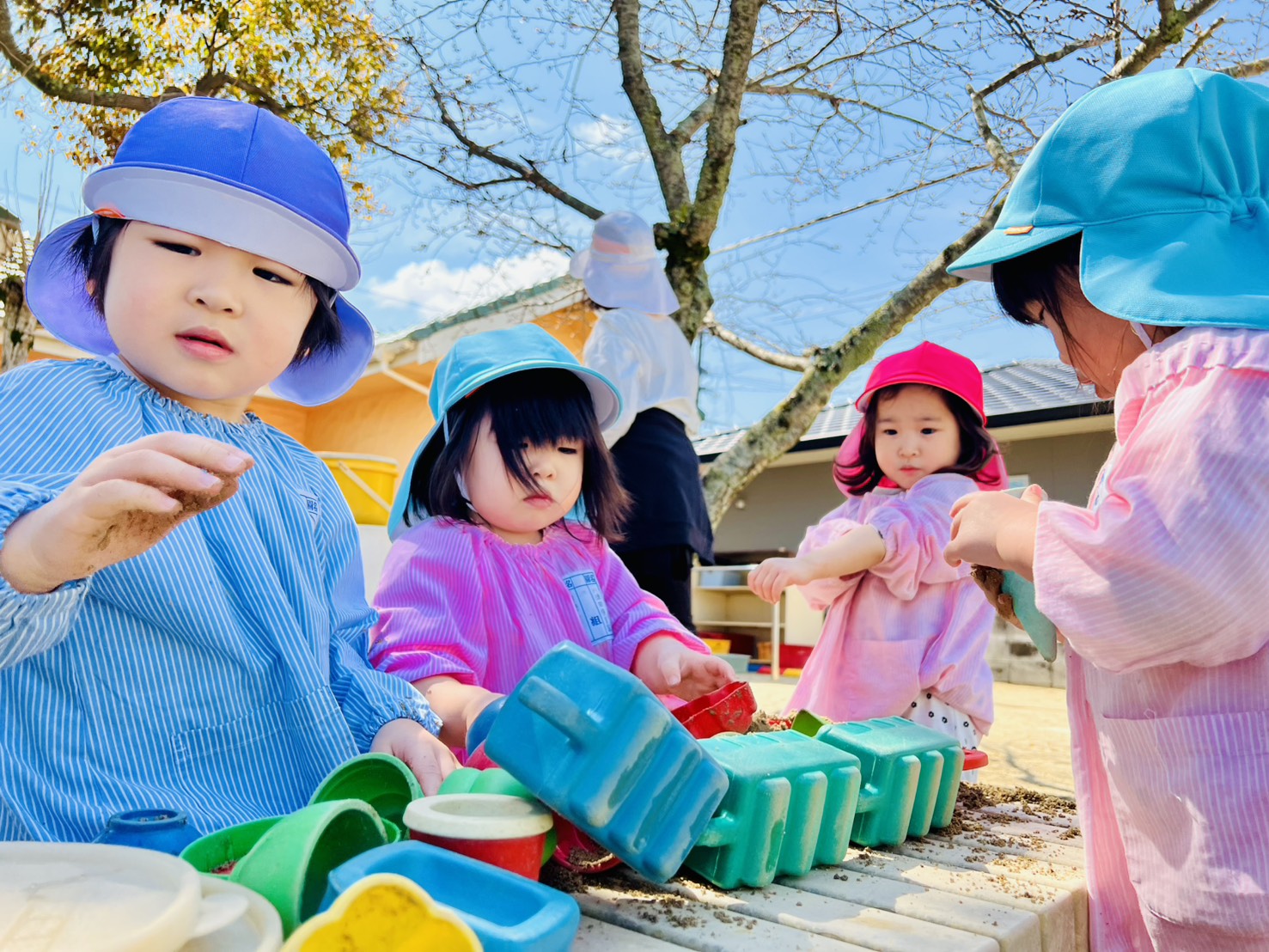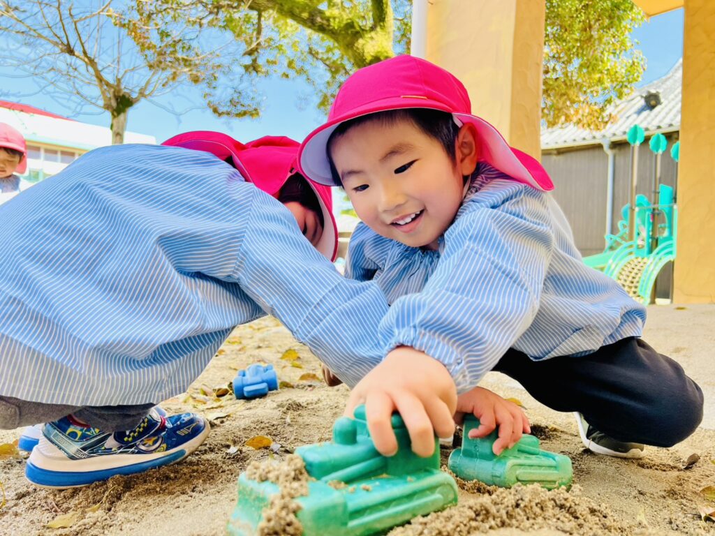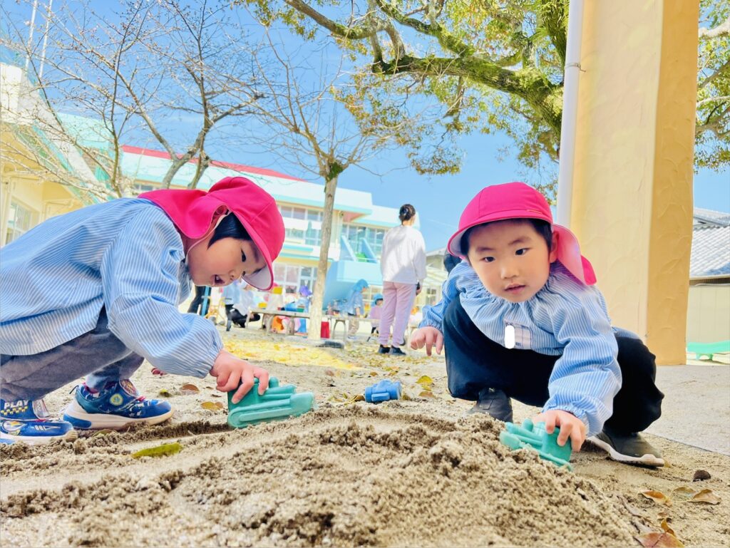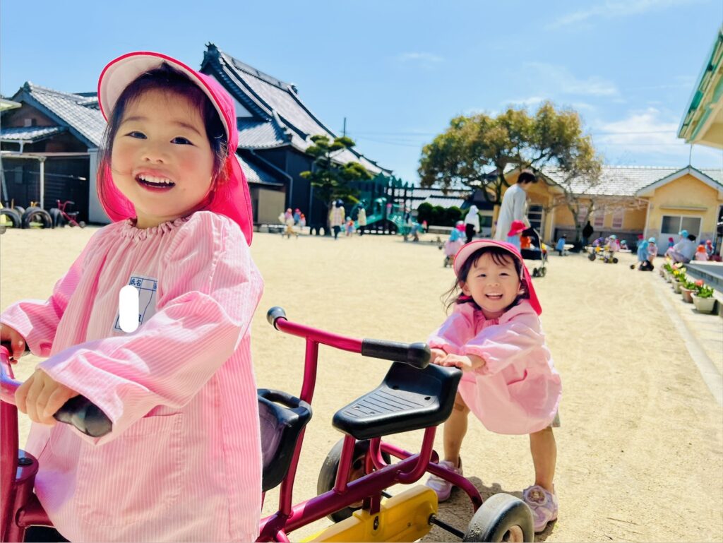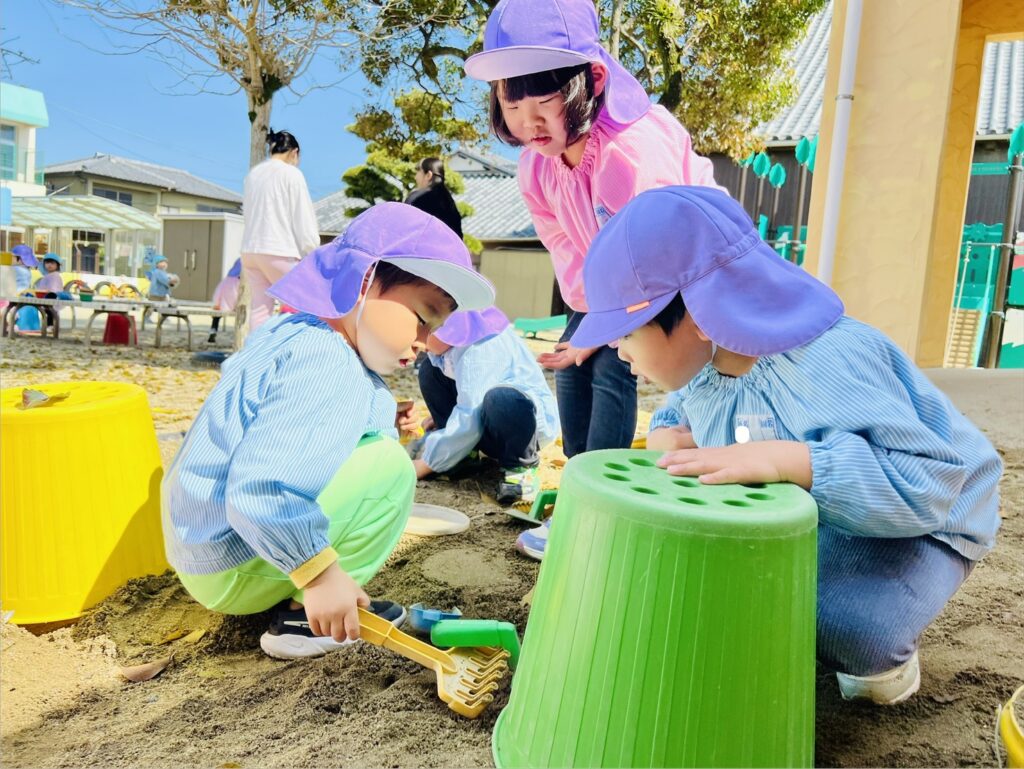 ほがらかな気温のなか、園庭では各クラスの声が響いていました。