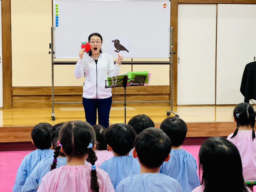 当園では年長・年中児を対象に、週に一度〝歌唱指導〟を行っています。