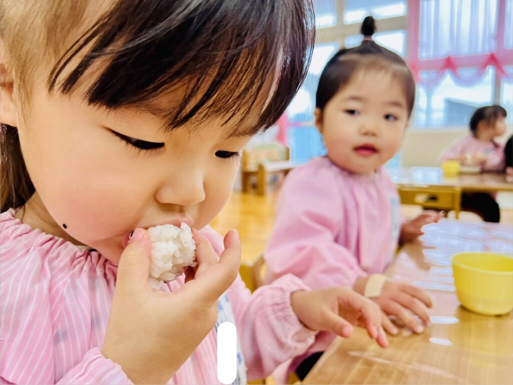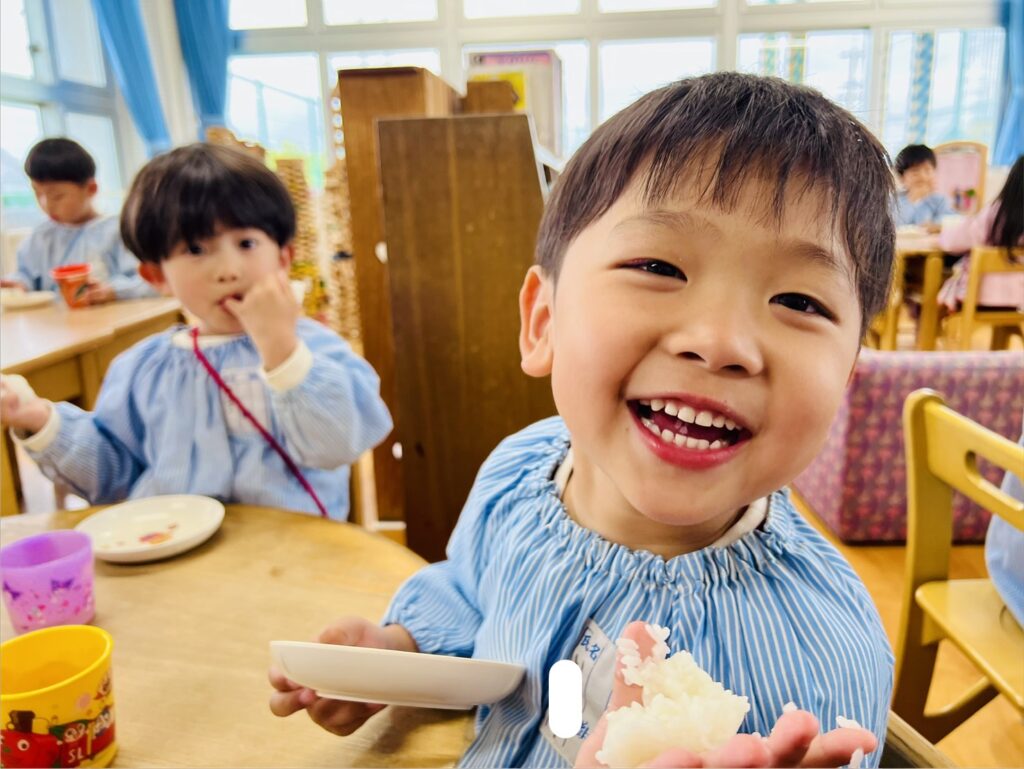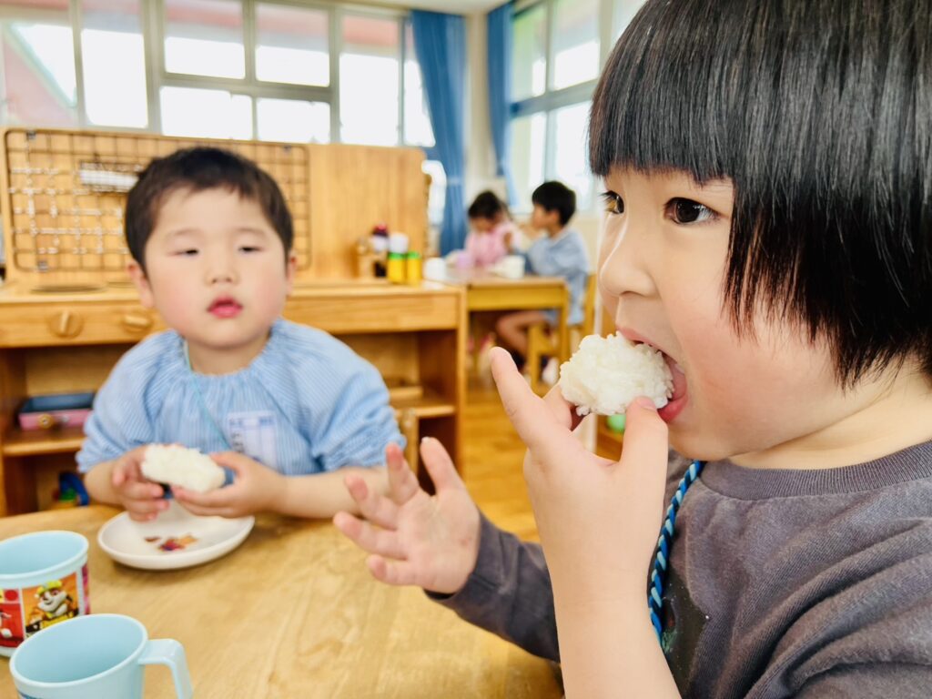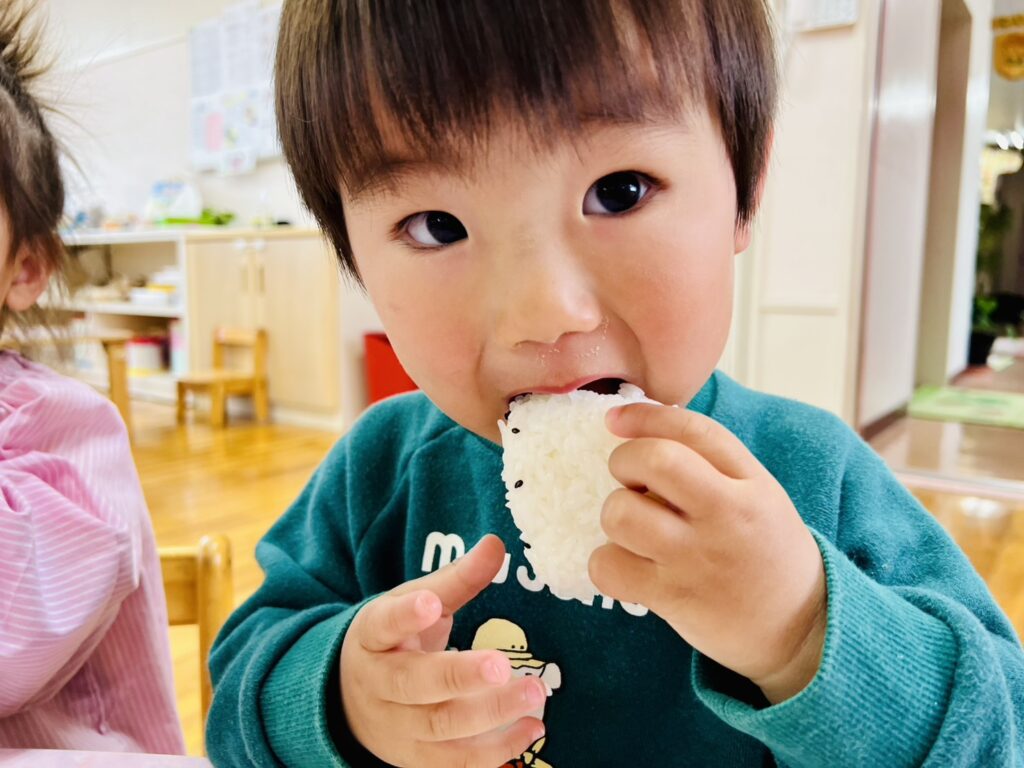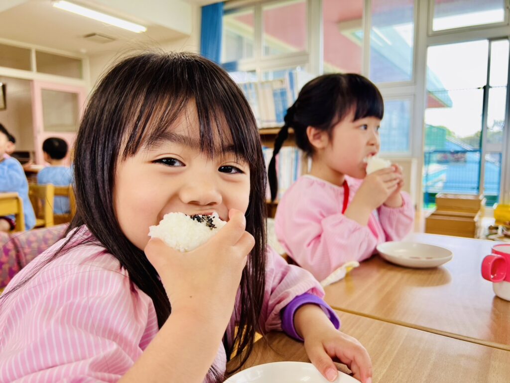 おにぎりに使用しているお米は、卒園児の保護者が提供くださった〝峯菜園のしぜん米〟です。
