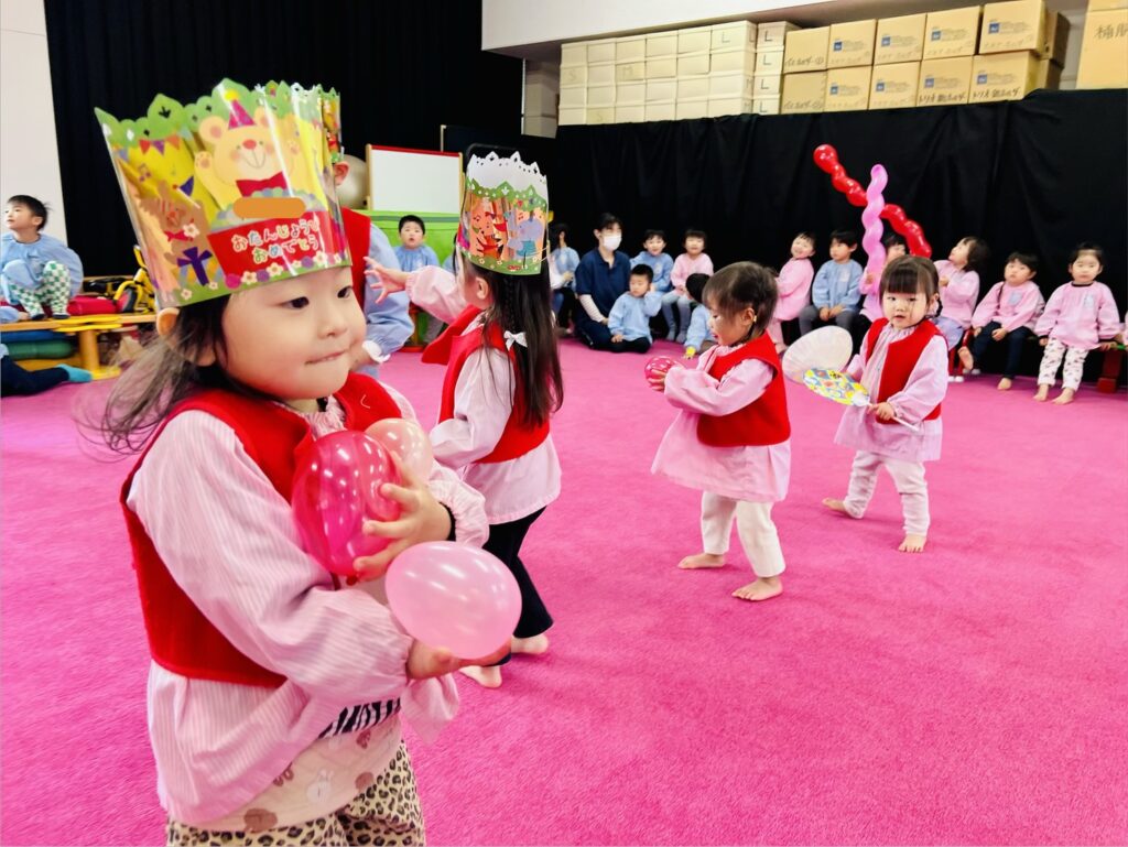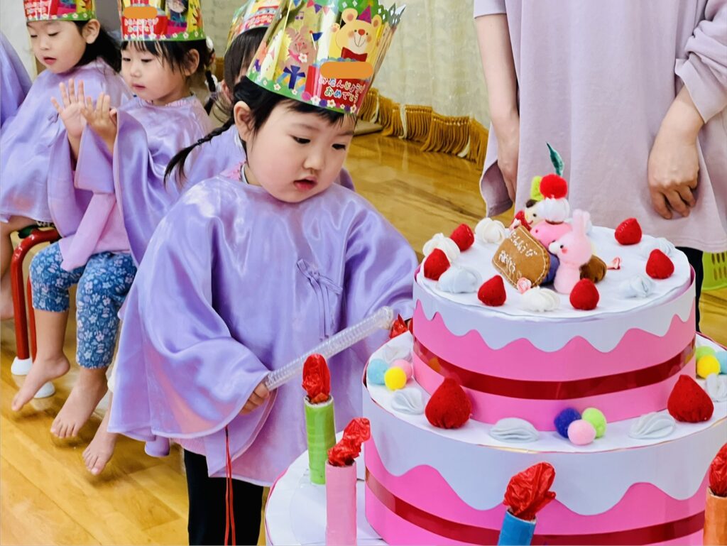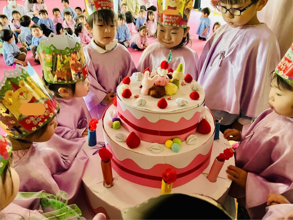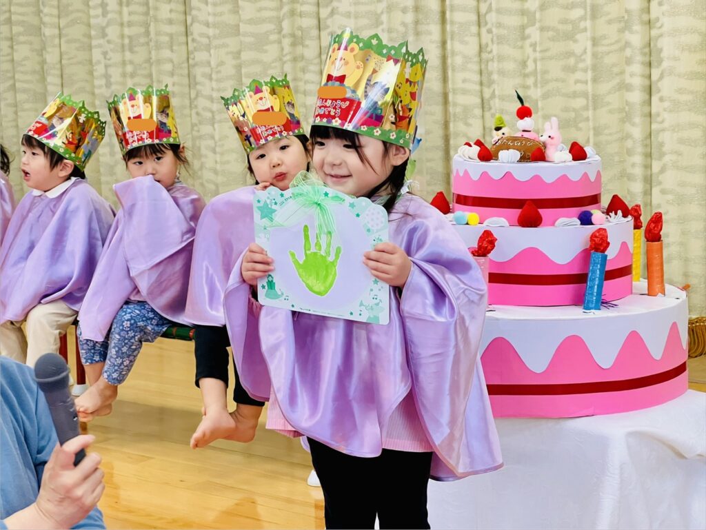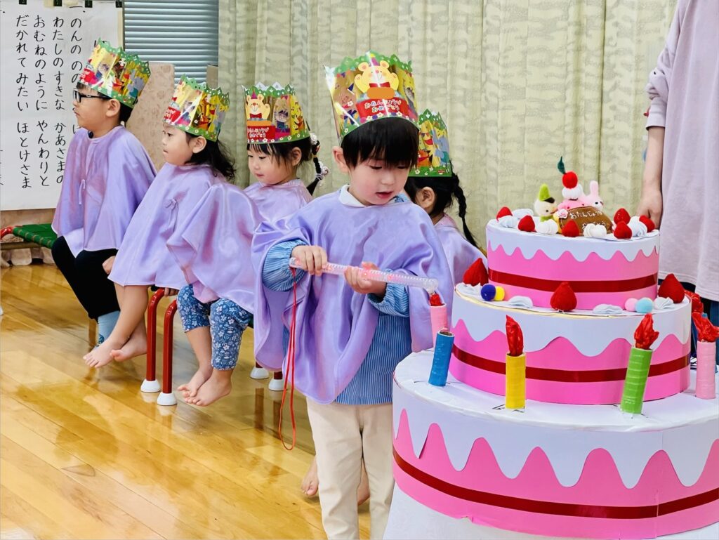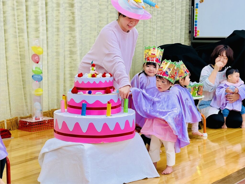 当園での誕生会は、その月の誕生児をみんなでお祝いする会です。