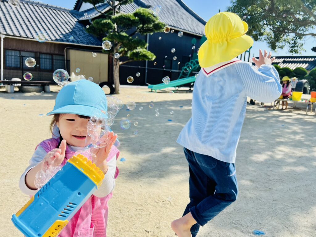 気候のちょうど良い季節となりました。園庭ではシャボン玉を通して〝秋の風〟を感じていました。 七色に輝くシャボン玉は、子ども達の笑顔と温かな日差しを受けてのように感じます。さて、木陰ではお店屋さんごっこを楽しんでいました。 また土管と大きな... -