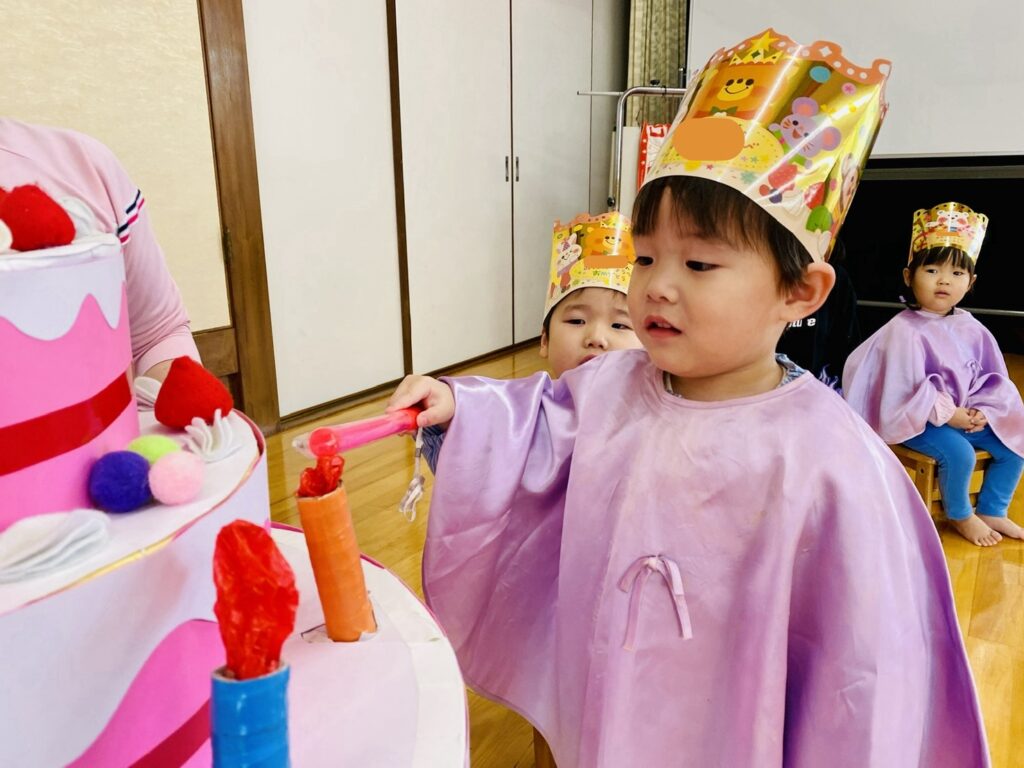 1月生まれのお友だち、お誕生おめでとうございます。誕生会は、その月の誕生児を保育園みんなでお祝いする会です。まずは、キャンドルサービスから楽しい会の始まりです!! 今月は寒さに負けない身体と心を作ろうをテーマに〝乾布摩擦と福ボール投げ〟を誕... -